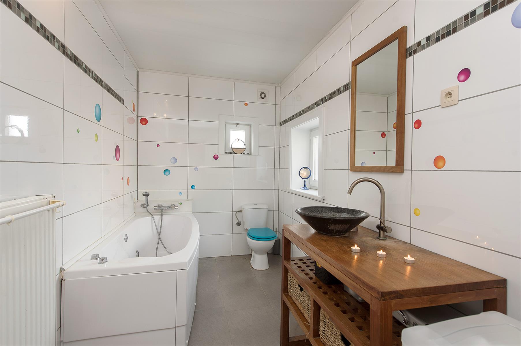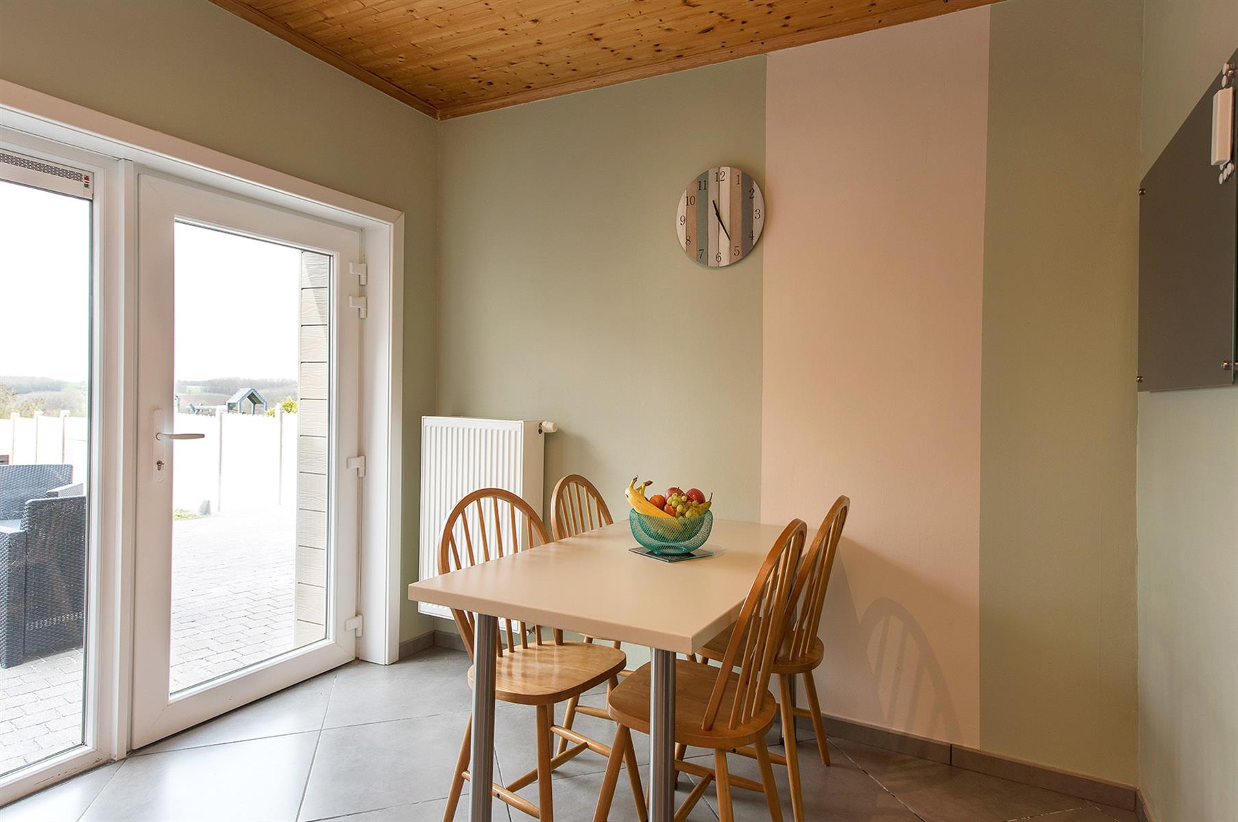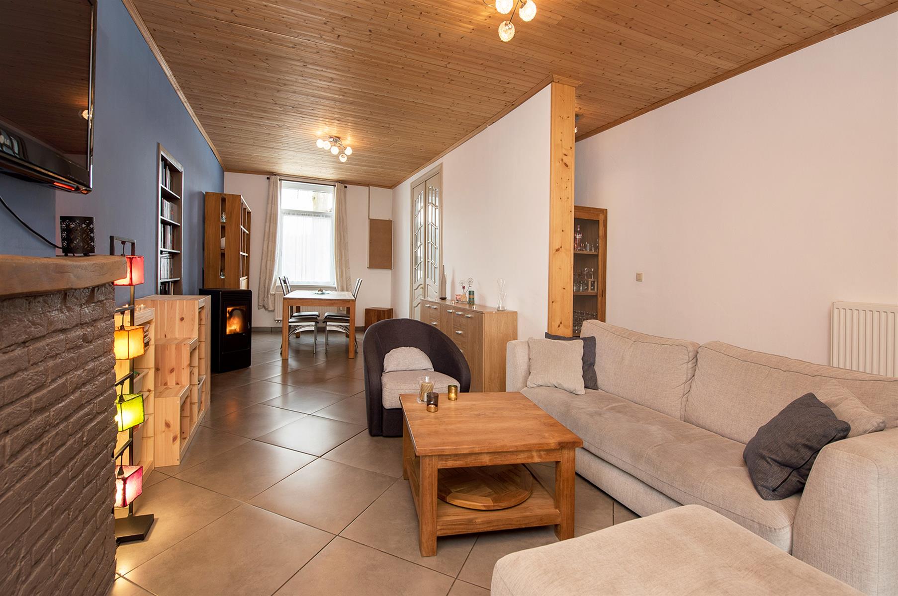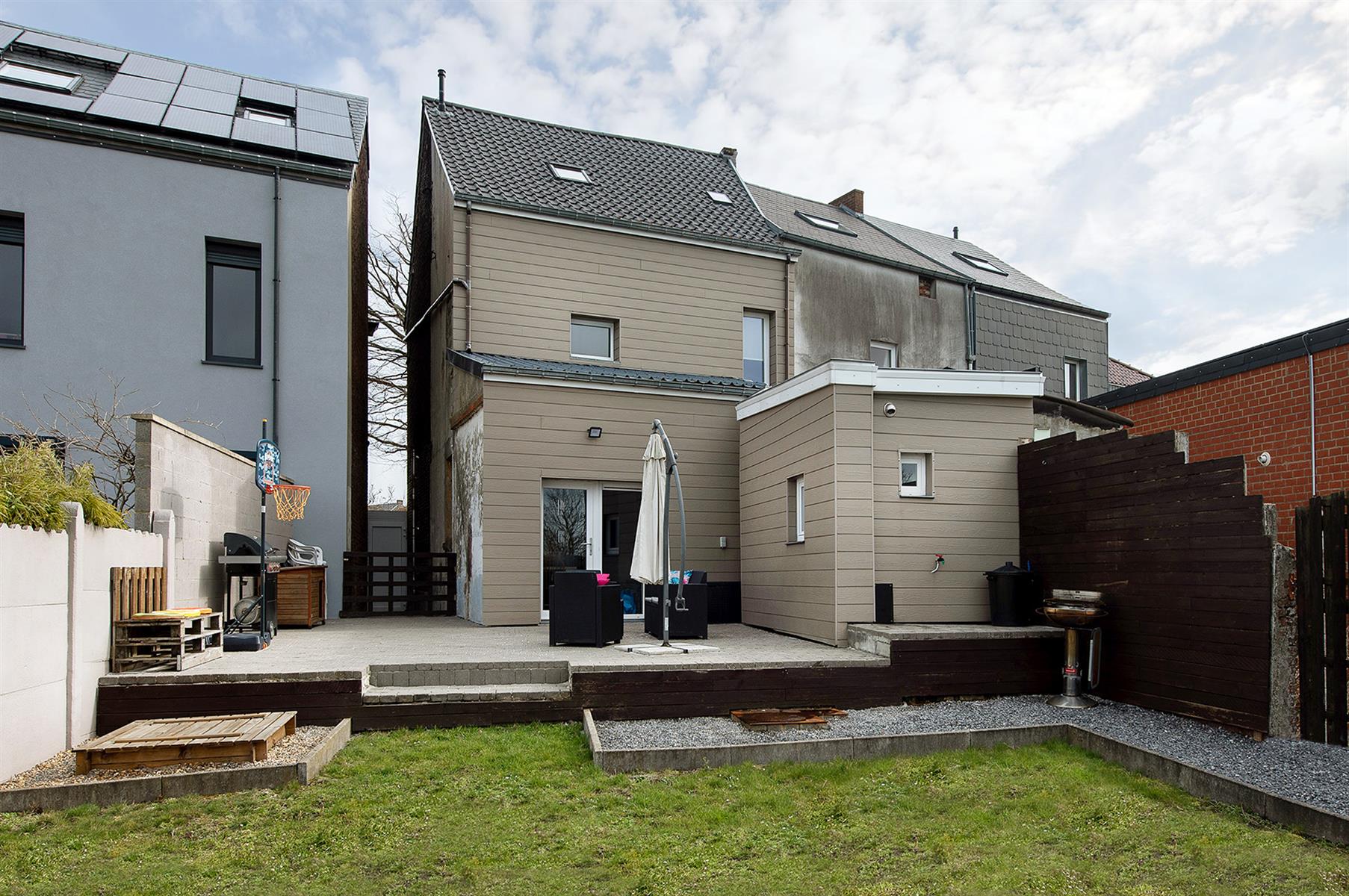 – Rez : hall d’entrée, séjour, cuisine, salle de bains, hall et petit garage de +/- 13,5m².