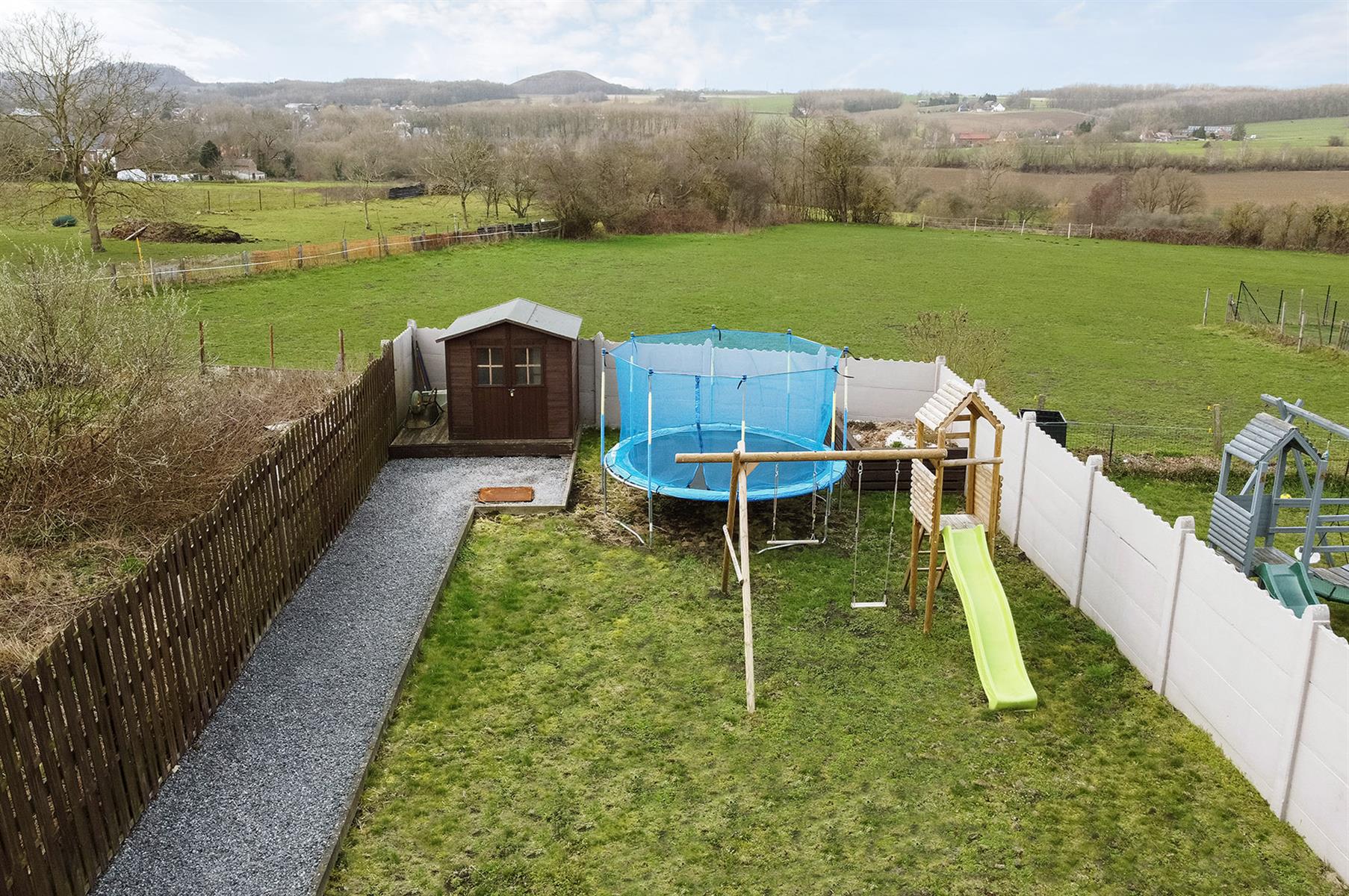 – Extérieur : terrasse et jardin orientés sud-ouest offrant une superbe vue panoramique, abri et passage latéral privatif.