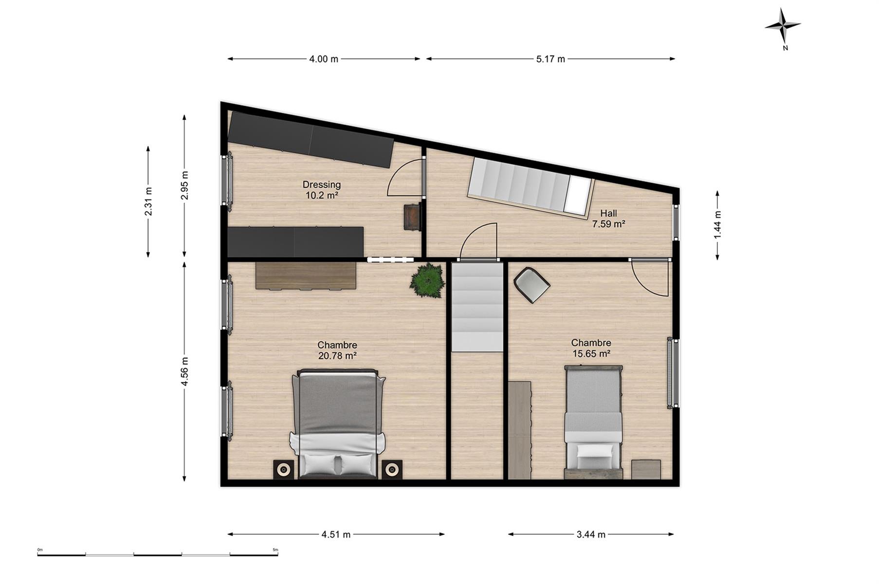 – Etage : hall de nuit desservant 2 chambres et dressing.