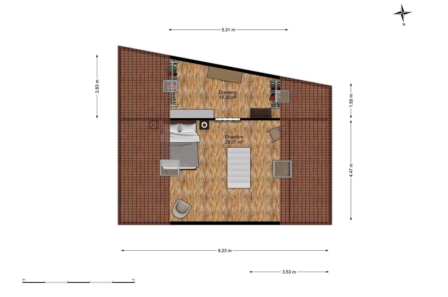 – Sous-combles : 1 chambre avec dressing.