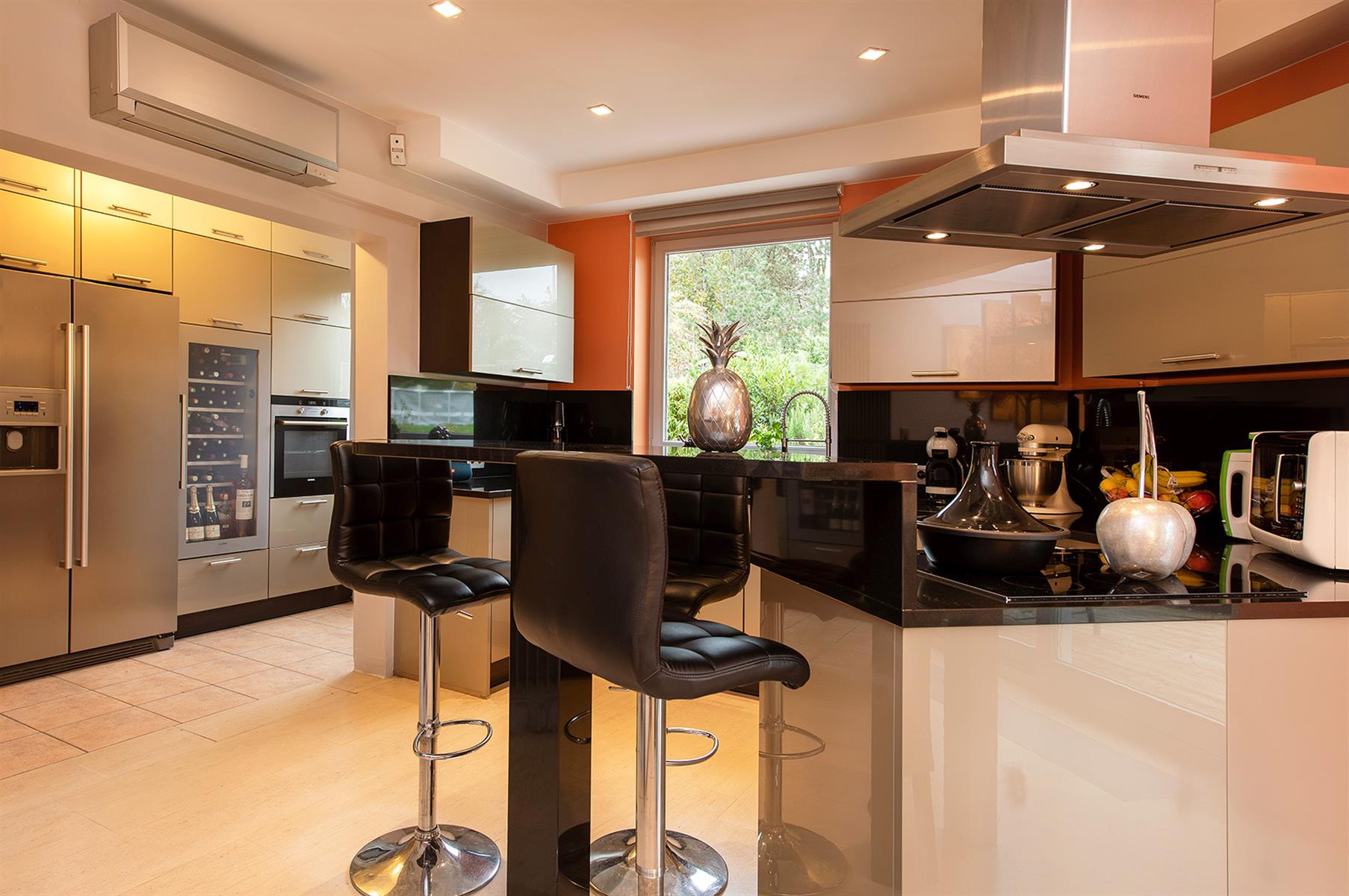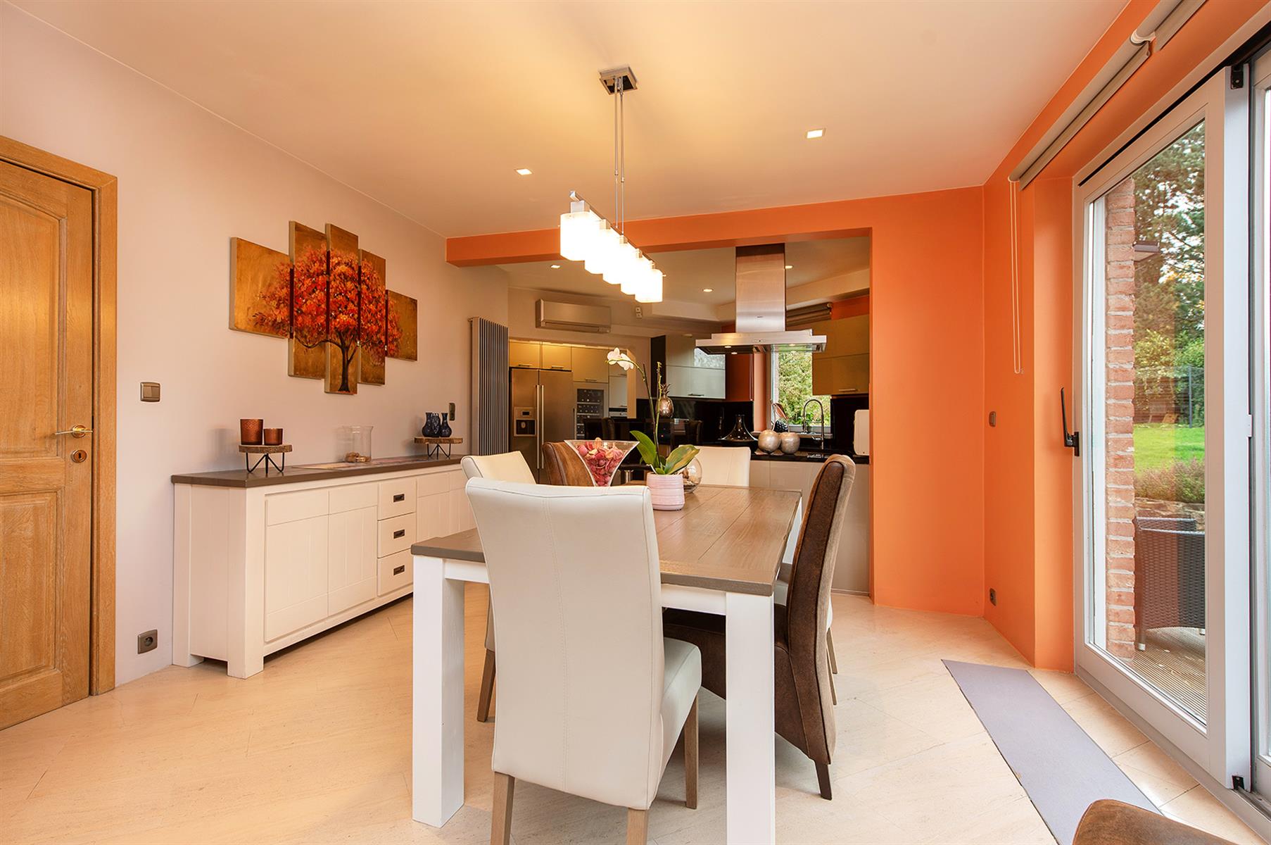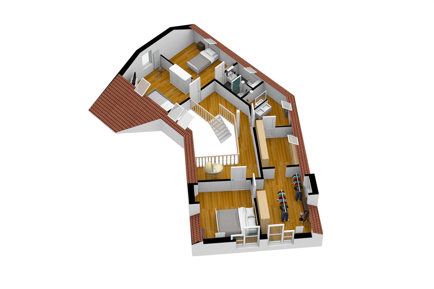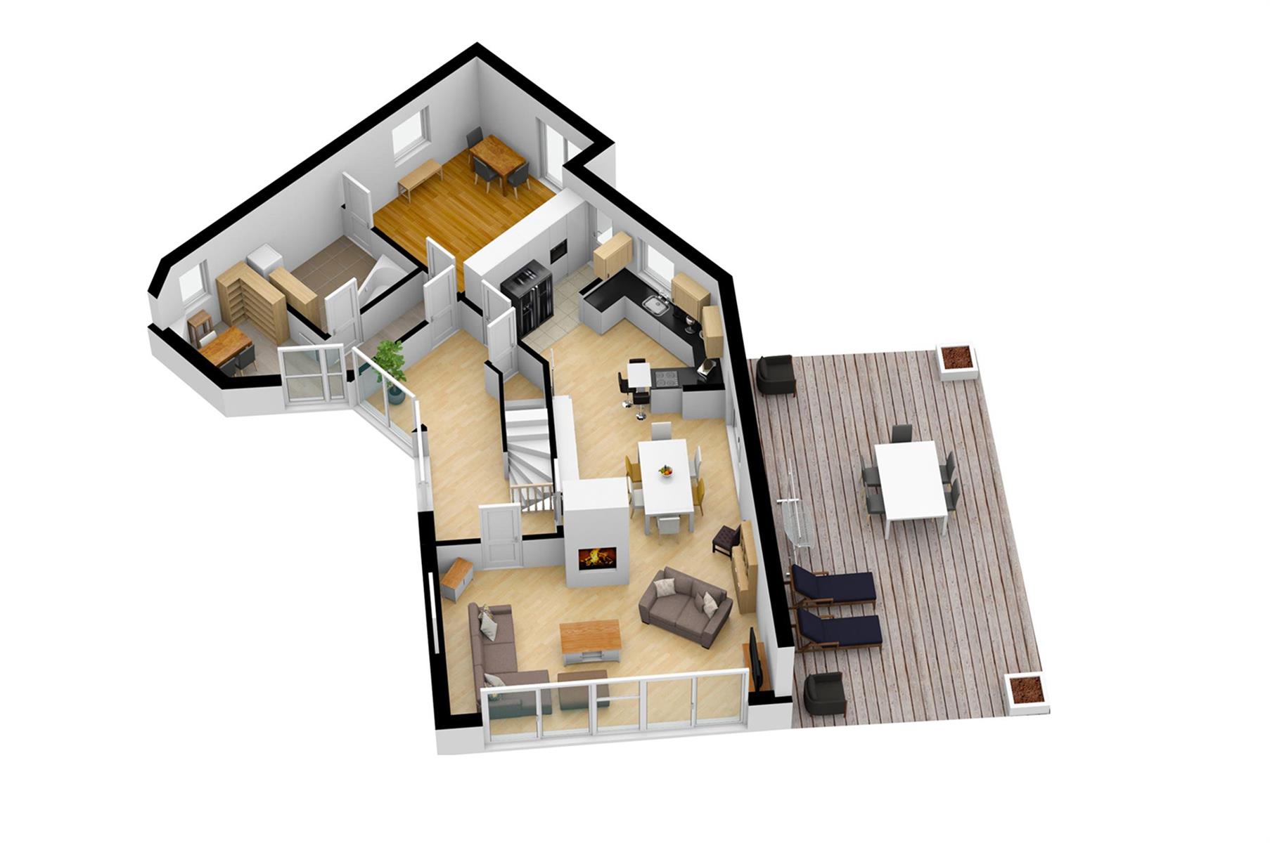 – Rez : hall d’entrée, vaste séjour agrémenté d’une cassette aux pellets, salle-à-manger, cuisine, buanderie, bureau, 1chambre, salle de bains et wc séparé.
