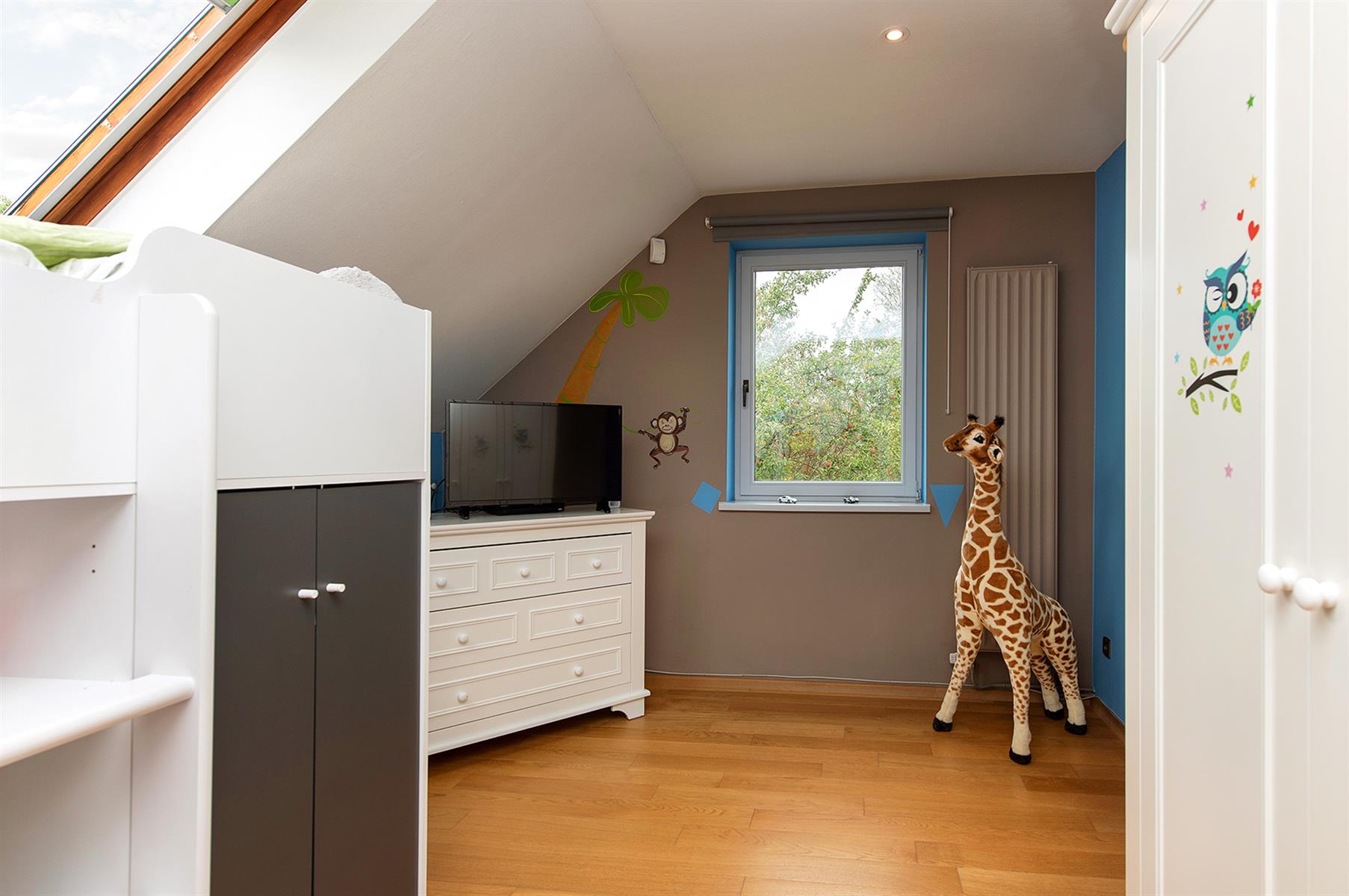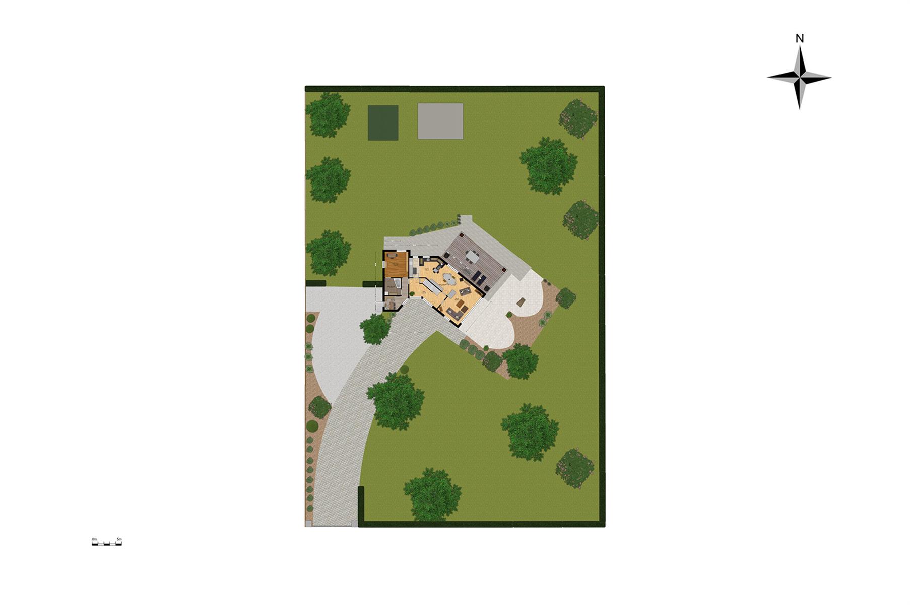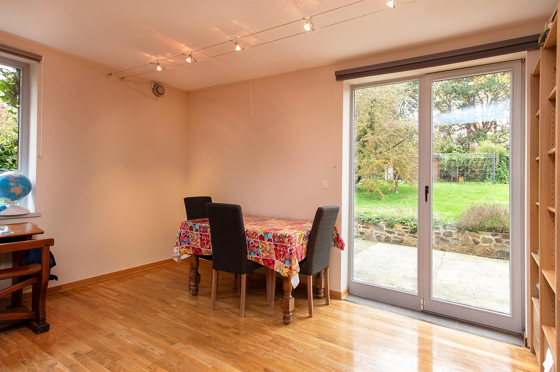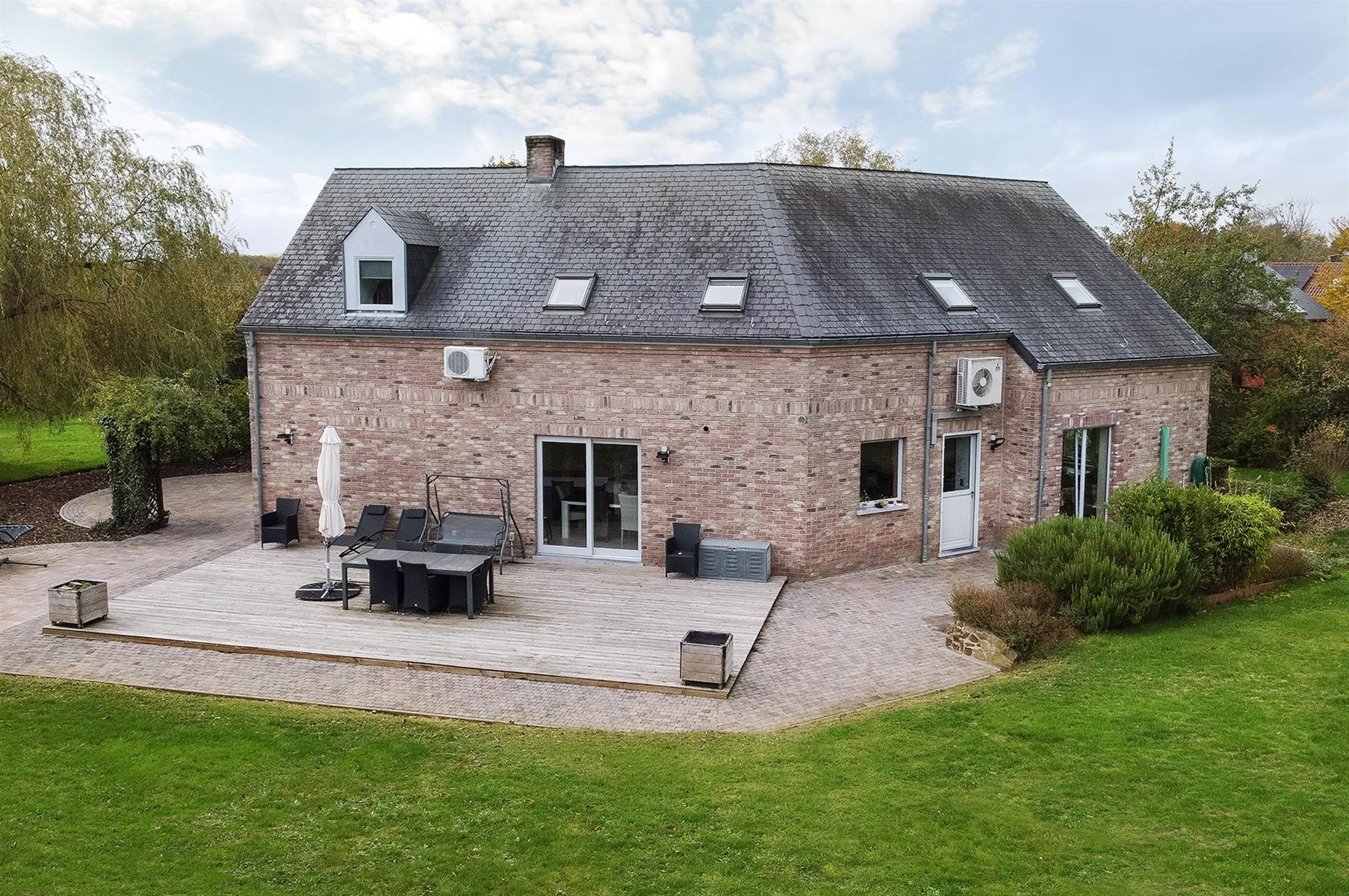 – Extérieur : grand jardin arboré avec terrasse.