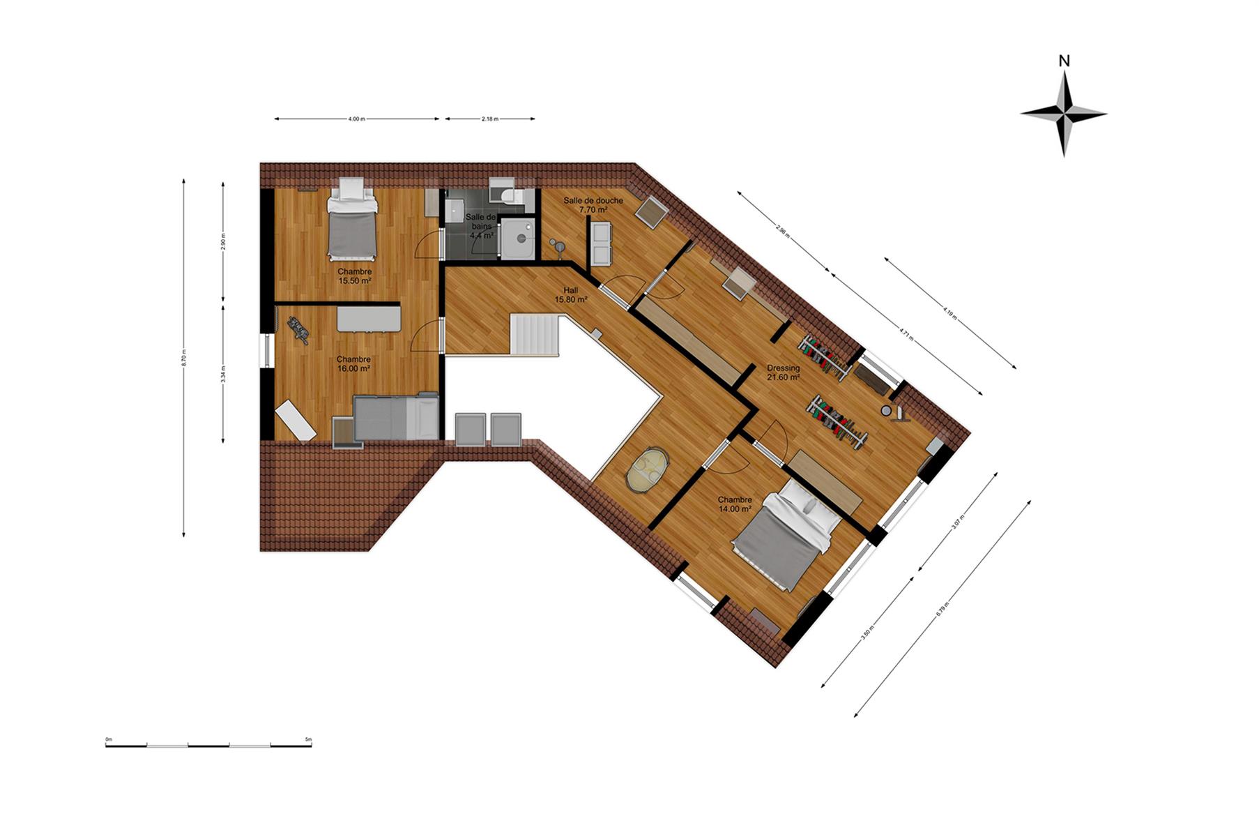 – Etage : hall de nuit desservant 3 chambres, 2 dressings et 2 salle de bains.