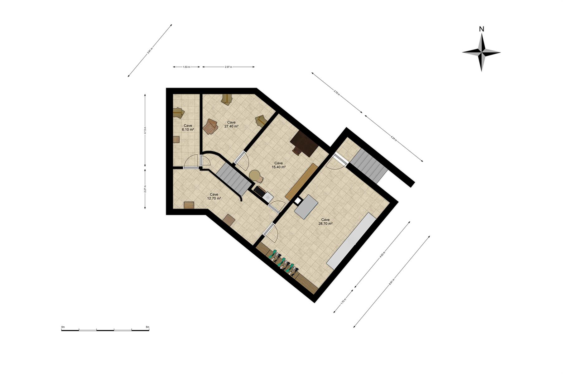 – Sous-sol : entièrement cavé avec chaufferie.