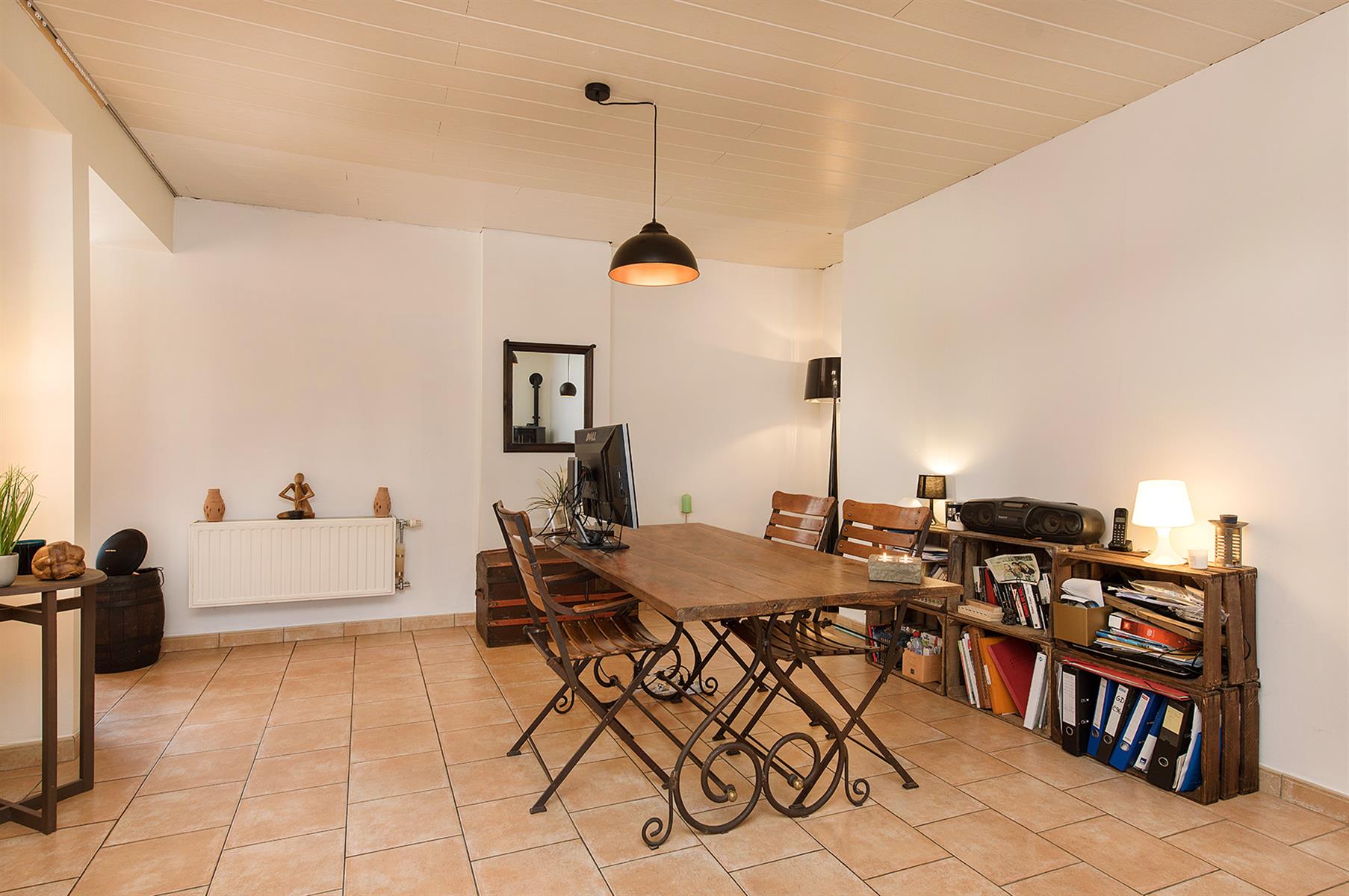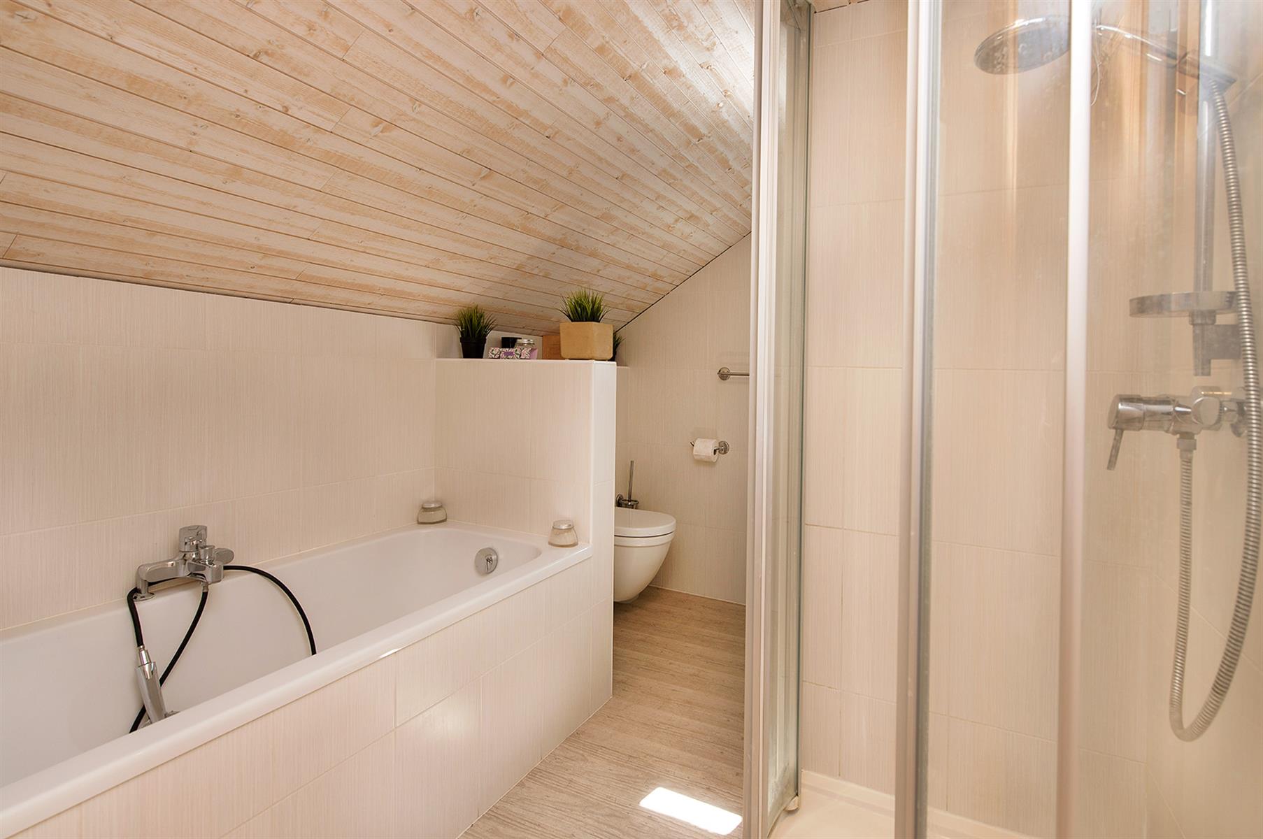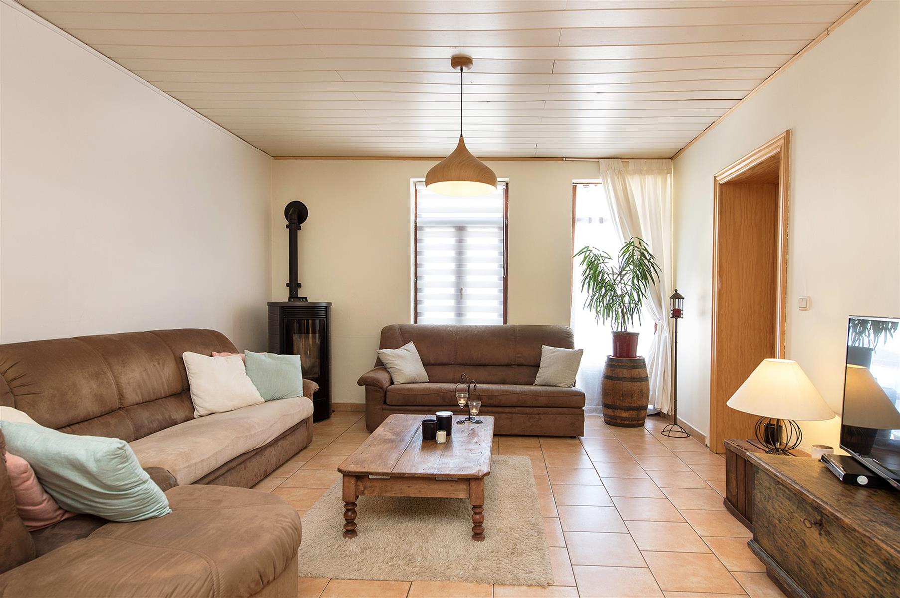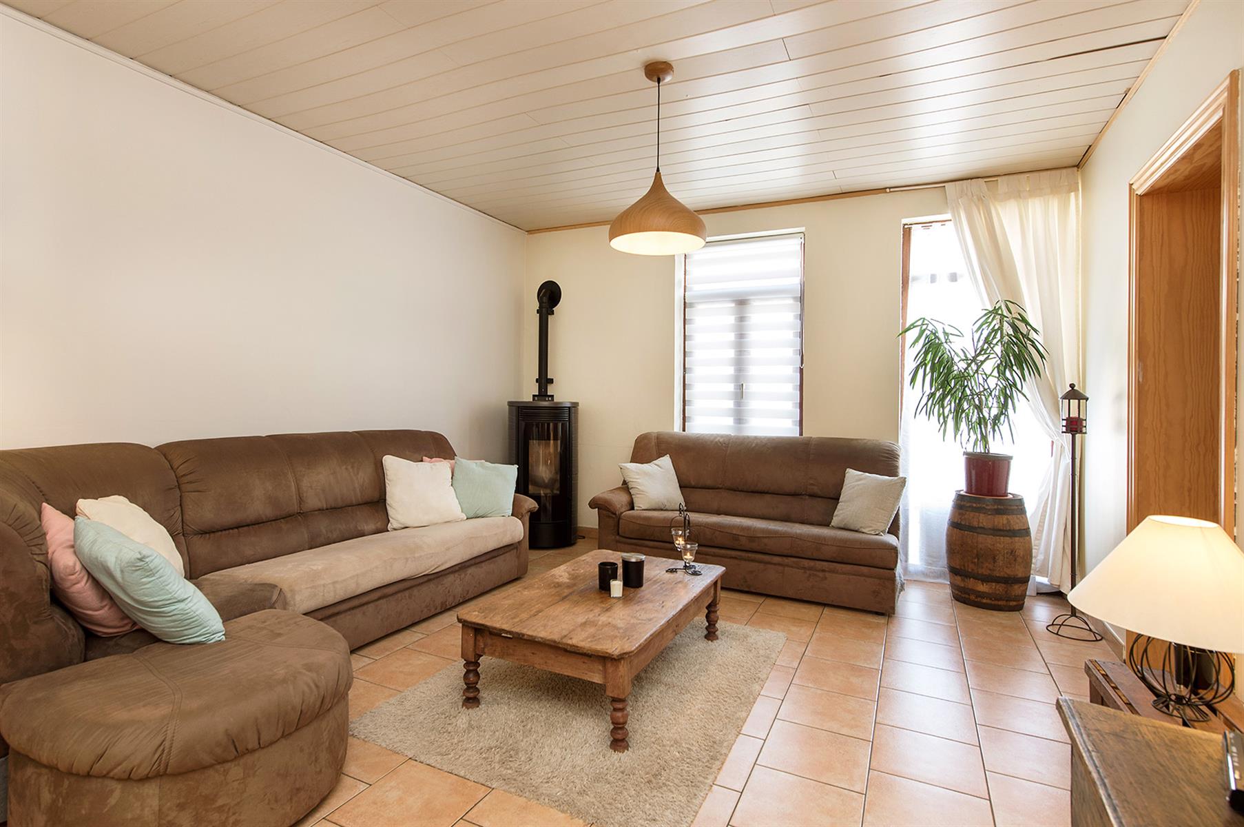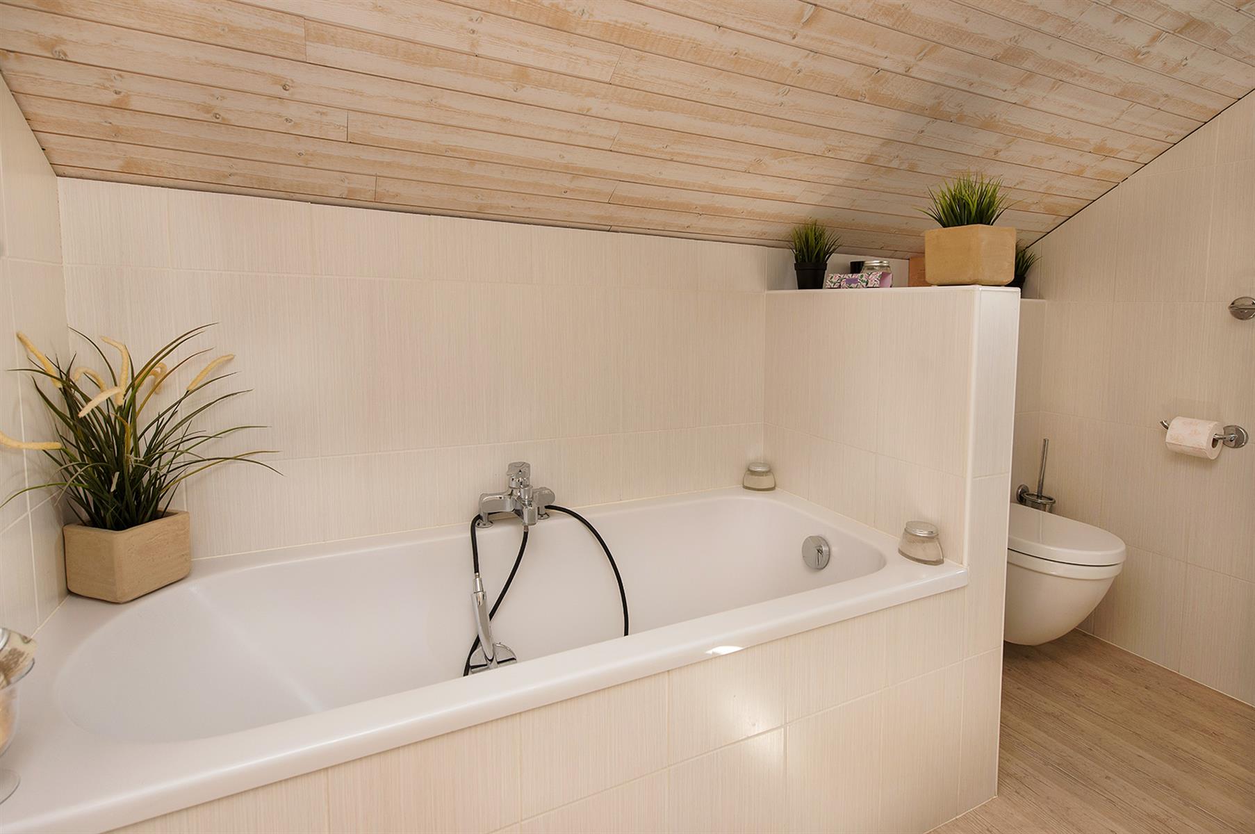 – Extérieur : Joli jardin arboré avec terrasse repris en zone bâtissable.