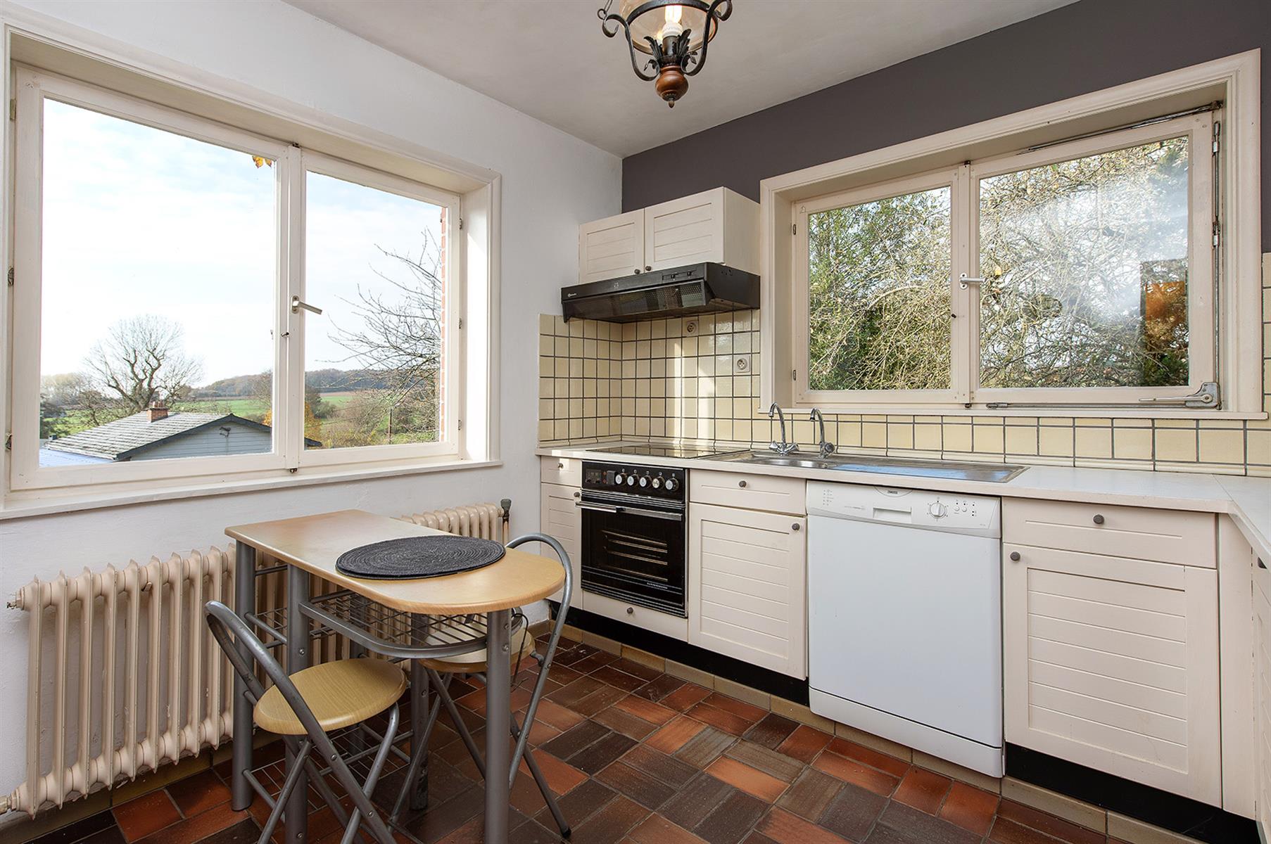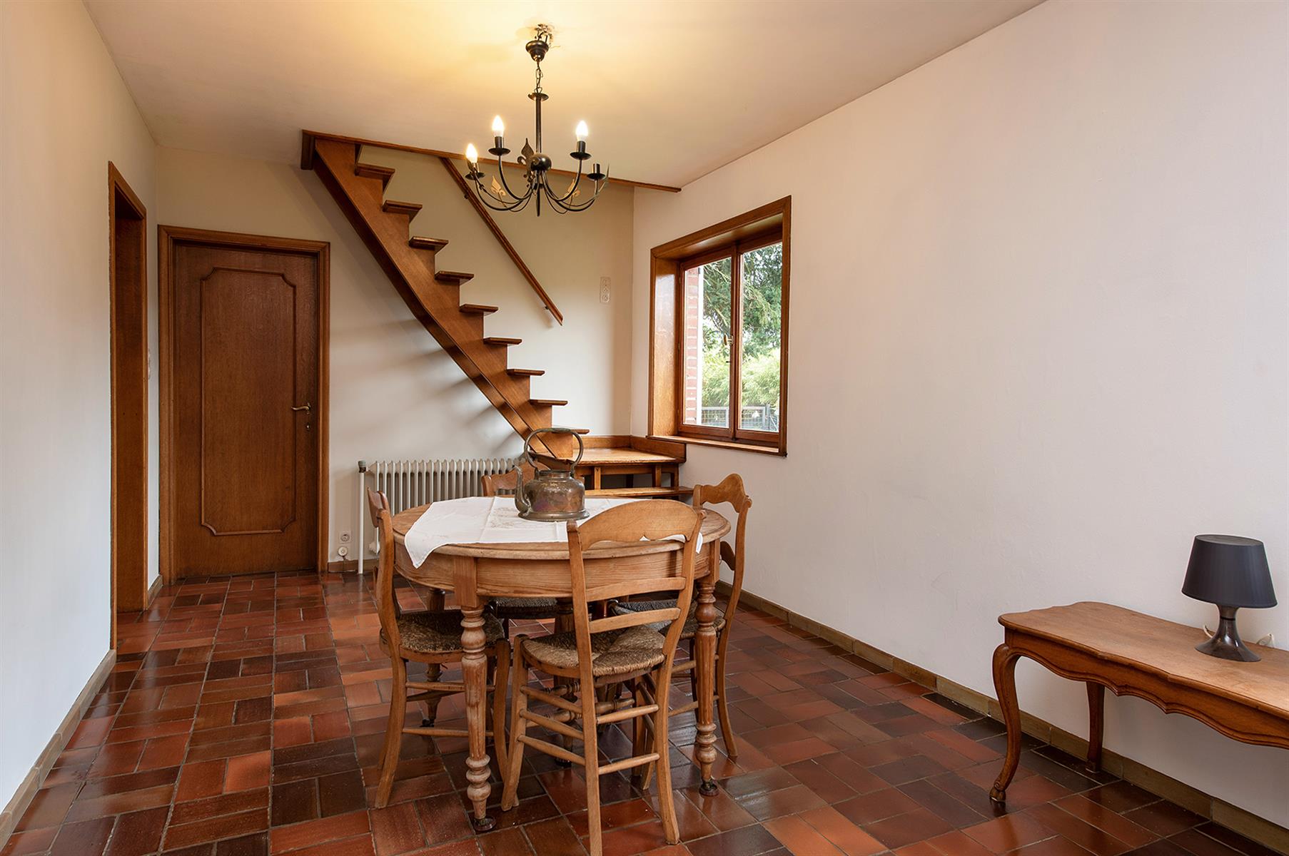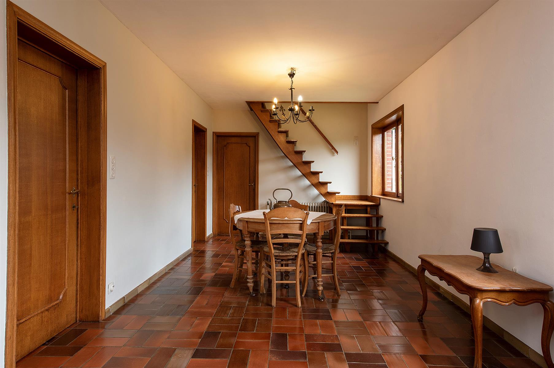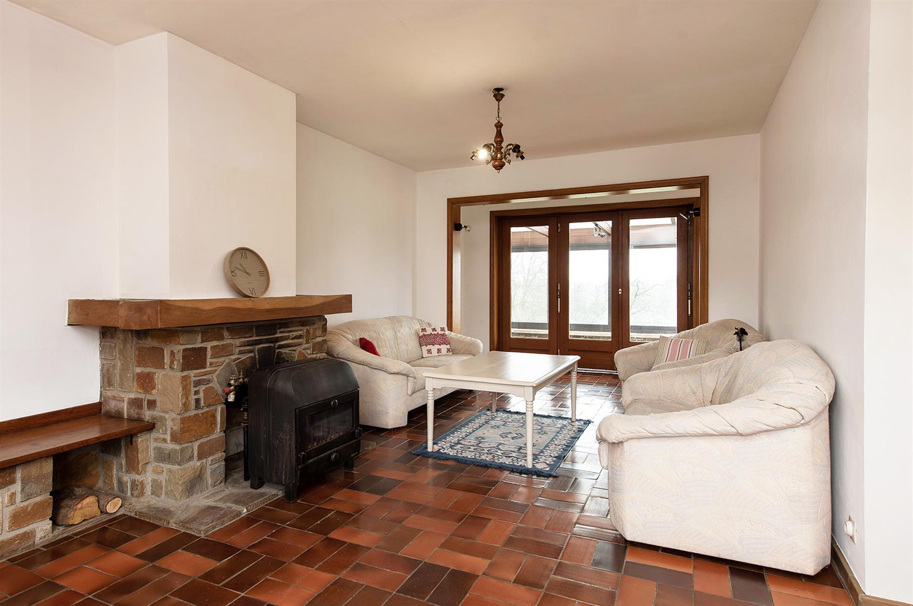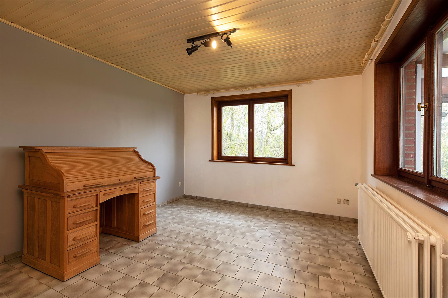 – Rez : hall d’entrée, vaste séjour agrémenté d’un poêle au bois, cuisine, terrasse couverte, salle de bains et 2 bureaux pouvant servir de chambres.