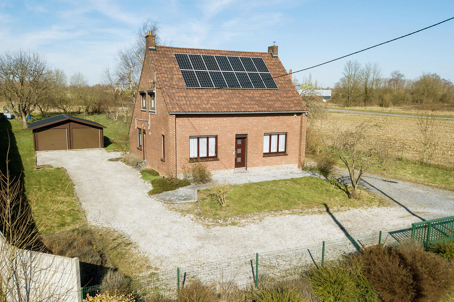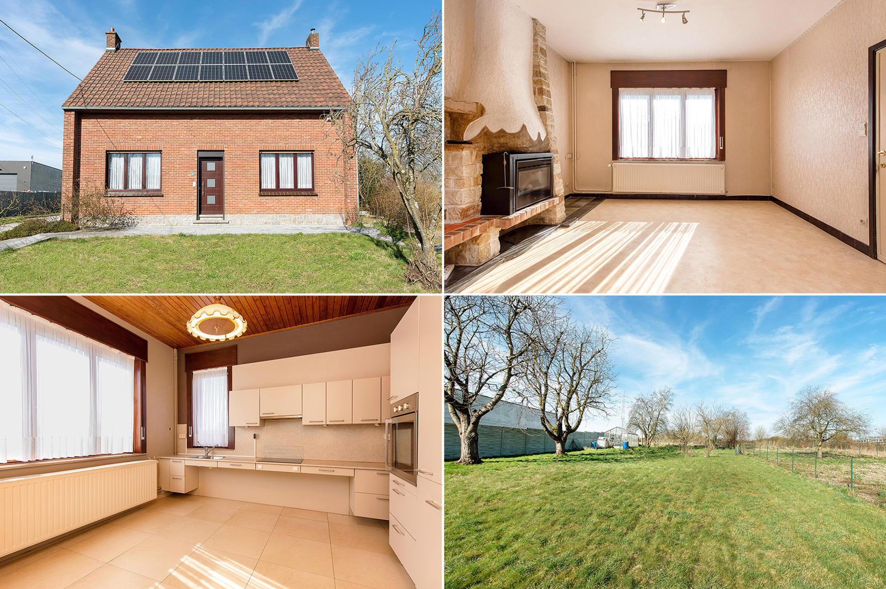Belle villa à rafraîchir équipée de 14 panneaux photovoltaïques offrant au rez : hall d’entrée, salon agrémenté d’un poêle au pellet, salle-à-manger, cuisine, chaufferie et wc séparé. A l’étage : hall de nuit desservant 3 chambres. Cave en sous-sol. Jardin arboré et clôturé en extérieur avec terrasse, serre, abri et belle annexe en bois de 40m2 offrant 2 garages – PEB : E – n°20220216010660 – 422 Kwh/m².an – 67.891 Kwh/an – FAIRE OFFRE A PARTIR DE 229.000 Euros sous réserve d’acceptation des vendeurs – RC : 565 Euros – VISITES REALISABLES UNIQUEMENT SUR RDV AU 0497.350.360