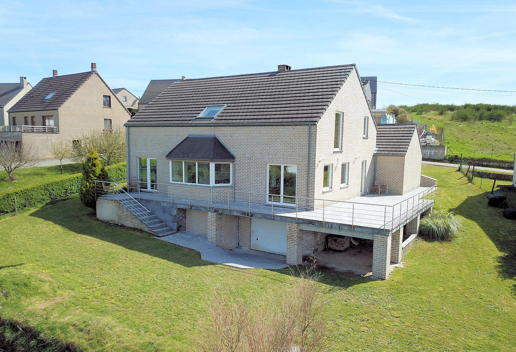 Située dans une rue calme et prisée, tout en étant proche de toutes les commodités – Belle villa de 2004 érigée sur une parcelle de presque 20 ares, offrant au rez : hall d’entrée, lumineux séjour reprenant un espace salon agrémenté d’un feu ouvert, la salle-à-manger et une cuisine ouverte full équipée, bureau (ou chambre), salle de douches, buanderie, wc séparé et garage pour un véhicule avec grenier de stockage. A l’étage : hall de nuit desservant 4 chambres et une salle de bains. Sous-sol entièrement cavé de +/- 95m2 – A l’extérieur : grande terrasse surplombant le jardin arboré et clôturé avec début de piscine enterrée à parachever – PEB : B – n°20210721008407 – 170 Kwh/m².an – 44.098 Kwh/an – FAIRE OFFRE A PARTIR DE 395.000 Euros sous réserve d’acceptation des vendeurs – RC : 1.264 Euros – VISITES REALISABLES UNIQUEMENT SUR RDV AU 0497.350.360