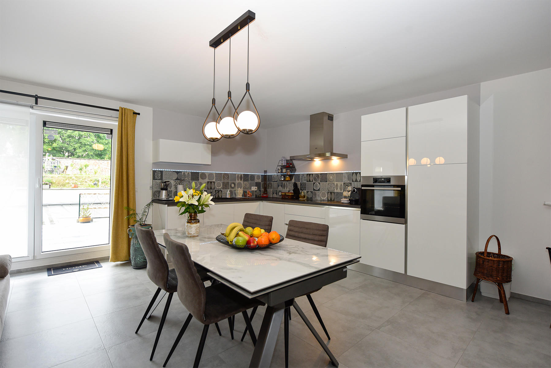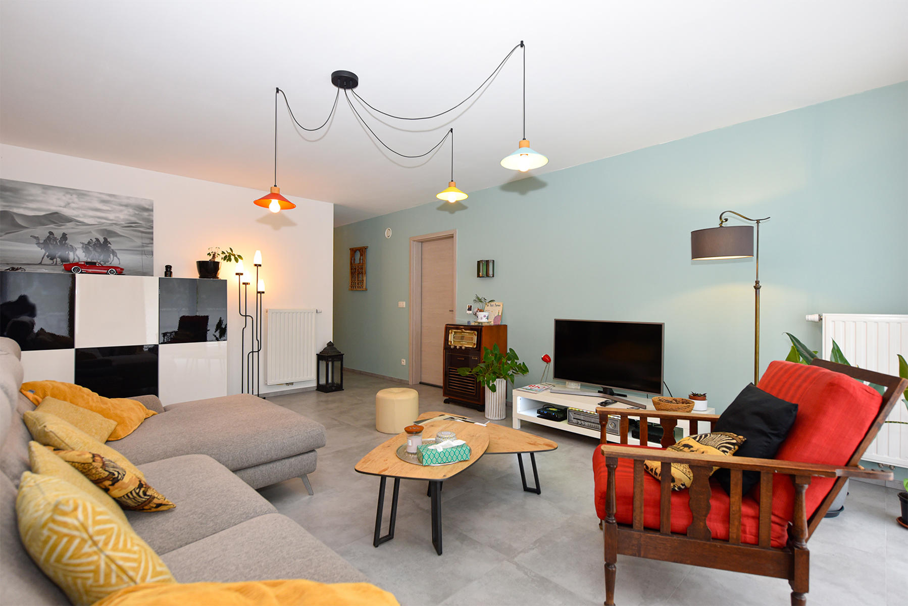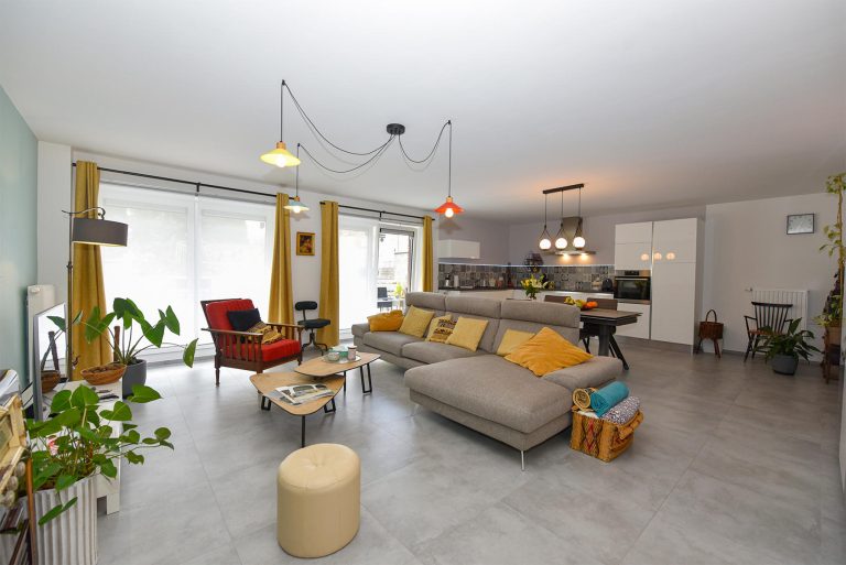 Superbe appartement de 2019 situé au rez de l’immeuble, offrant : hall d’entrée, séjour avec cuisine, buanderie, hall de nuit, 2 chambres et salle de bains. Cave privative et garage au sous-sol. A l’extérieur : jardin privatif arboré avec grande terrasse orientés Ouest. Le bien est équipé d’un système d’alarme et d’une ventilation double flux – PEB : B – n°20190827501386 – 118 Kwh/m².an – 14.628 Kwh/an – RC : 969 Euros – FAIRE OFFRE A PARTIR DE 239.000 Euros sous réserve d’acceptation des vendeurs – VISITES REALISABLES UNIQUEMENT SUR RDV AU 0478/42.92.80