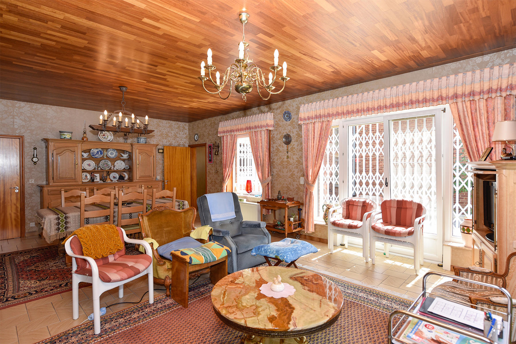 +++ RARE OPPORTUNITE +++ Située dans un quartier prisé, proche de toutes les commodités – Villa jumelée offrant au rez : spacieux hall d’entrée avec coin vestiaire, séjour agrémenté d’un insert au bois, cuisine, chambre/bureau, salle de bains, wc séparé. A l’étage : hall de nuit desservant 2 chambres, wc séparé et terrasse couverte. Grandes caves en sous-sol avec chaufferie, buanderie et garage pour 1 véhicule. A l’extérieur : grande terrasse carrelée donnant accès à un beau jardin arboré et clôturé avec passage latéral carrossable et grande remise reprise au plan cadastral – PEB : G – n°20220609022721 – 585 Kwh/m².an – 126.777 Kwh/an – FAIRE OFFRE A PARTIR DE 239.000 Euros, sous réserve d’acceptation des vendeurs – RC : 1.561 Euros – VISITES REALISABLES UNIQUEMENT SUR RDV AU 0497/350.360