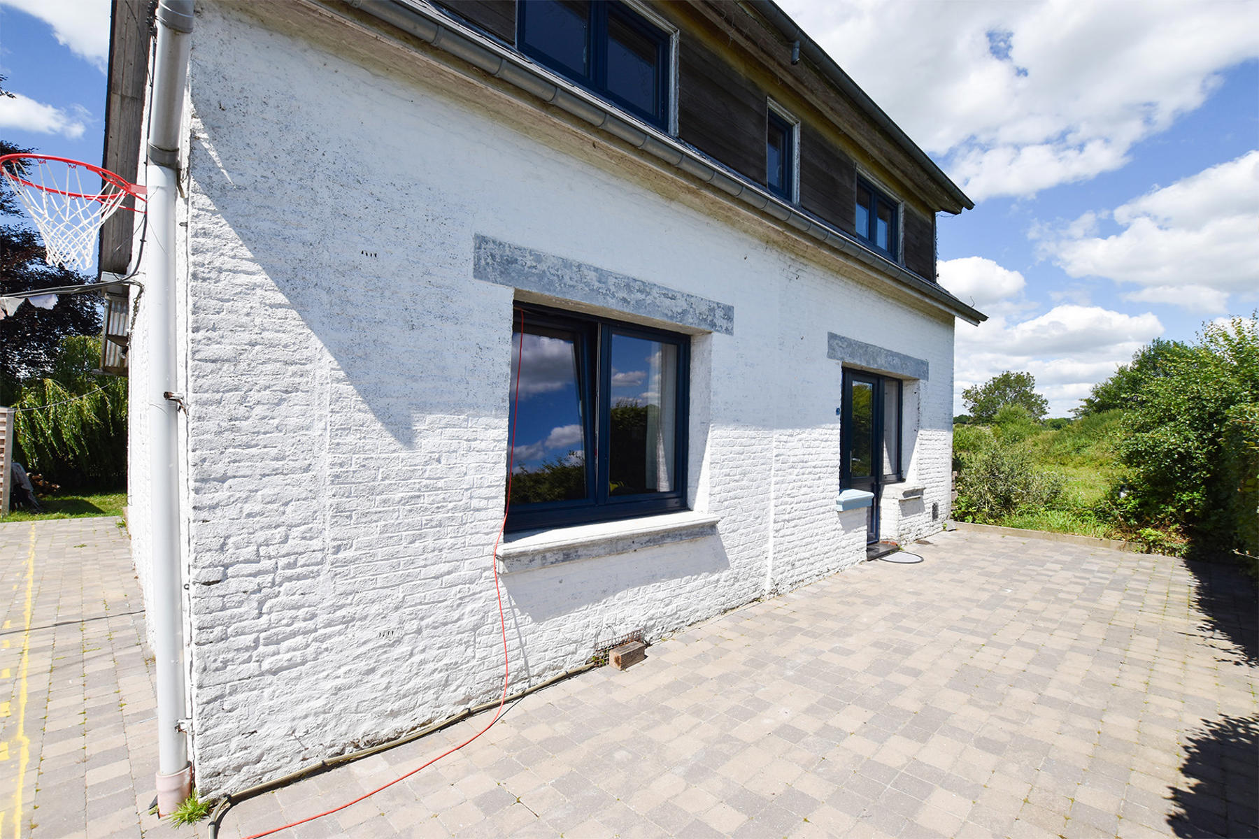 Maison 4 façades à rafraîchir offrant au rez : séjour, cuisine, buanderie, chaufferie et wc séparé. A l’étage : hall de nuit desservant 3 chambres, salle de bains et wc séparé. Bureau sous-combles. Cave en sous-sol. Extérieur : terrasse couverte et vaste parcelle de jardin avec vue magnifique sur la campagne – PEB : E – n° 20191128013690 – 361 Kwh/m².an – 56.711 Kwh/an – FAIRE OFFRE A PARTIR DE 169.000 Euros sous réserve d’acceptation des vendeurs – RC : 443 Euros – VISITES REALISABLES UNIQUEMENT SUR RDV AU 0497/350.360