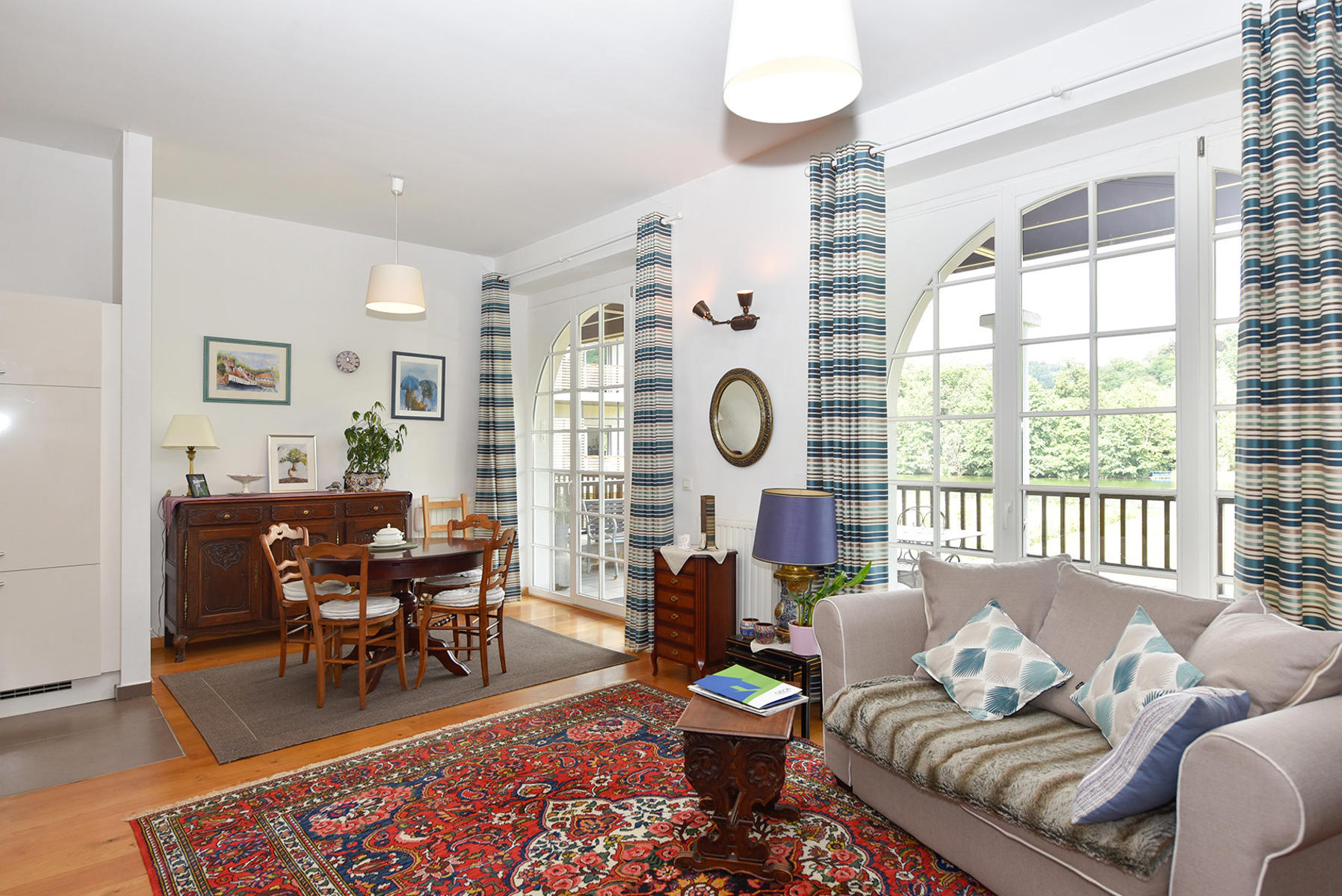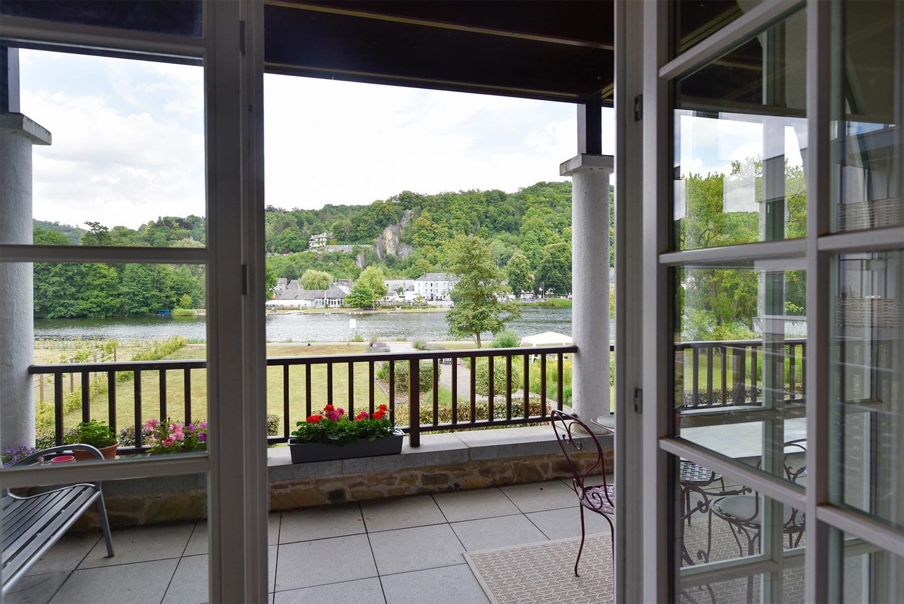 + Ancien Hôtel Vachelaire sis zone Natura 2000 + Superbe duplex avec vue incroyable sur la Meuse entièrement rénové en 2014 offrant au rez : hall d’entrée, séjour, cuisine , wc séparé et belle terrasse couverte de +/- 25m2. A l’étage -1 il offre : 2 chambres, dressing, buanderie, salle de bains, cave et seconde terrasse de +/- 10m2 avec jolie partie de jardin privé orienté Est. A l’extérieur : beau grand parc commun et place de parking – PEB : C – n° 20141223022920 – 247 Kwh/m².an – 28.683 Kwh/an – FAIRE OFFRE A PARTIR DE 259.000 Euros sous réserve d’acceptation des vendeurs – RC : 742 Euros – VISITES REALISABLES UNIQUEMENT SUR RDV AU 0497/350.360
