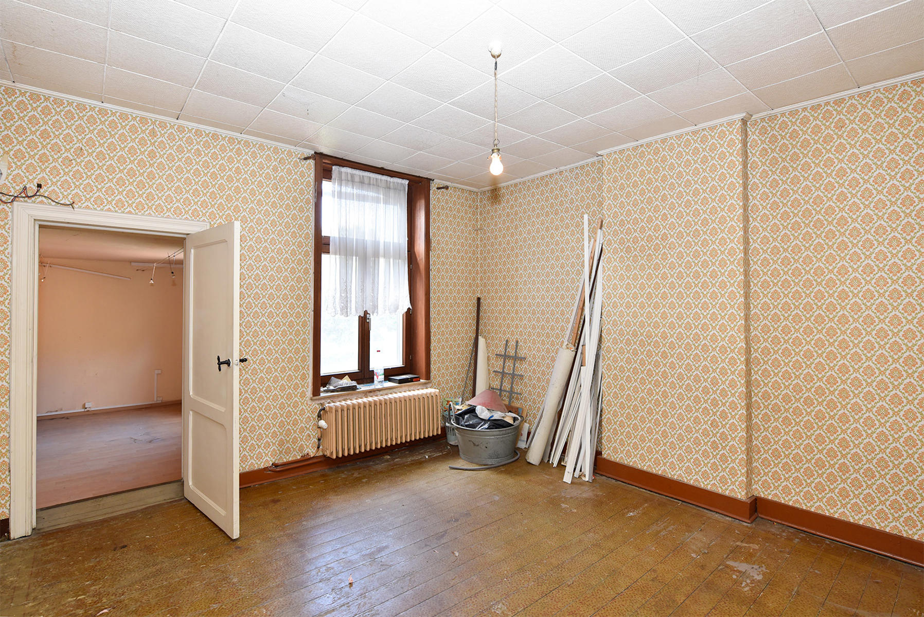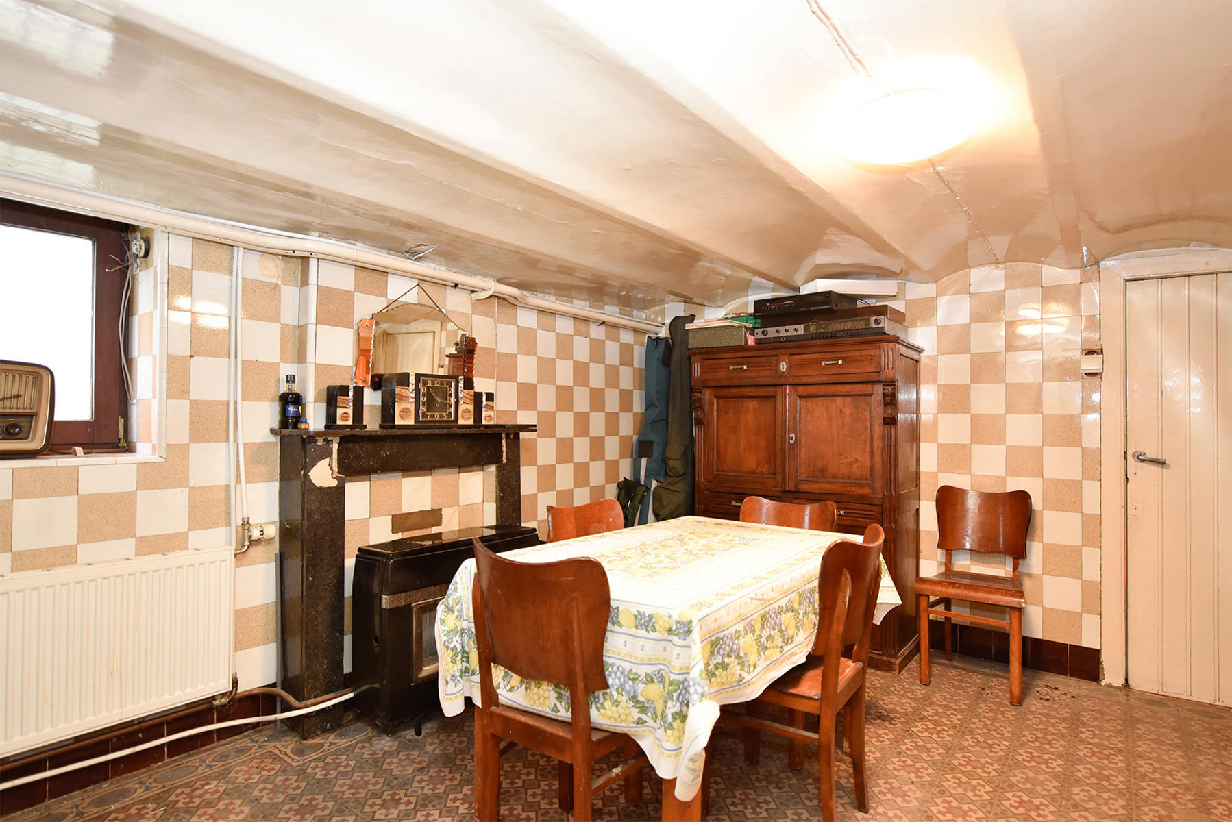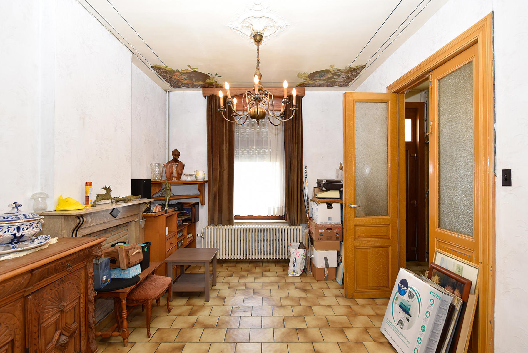 Maison à rénover située dans une rue calme et proche des commodités. Composition du rez : hall d’entrée, salon, salle-à-manger et spacieuse cuisine. A l’étage : hall de nuit desservant 3 chambres. Combles aménageables de +/-23m². Sous-sol : cave, salle de bains, chaufferie, buanderie, atelier et remise. Jardin clôturé et arboré, idéalement orienté Sud-Ouest avec terrasse +++ Dans le prolongement du jardin, LOT DE 2 GARAGES ERIGES SUR UNE PARCELLE DE TERRAIN BATISSABLE VENDUS EN OPTION APD 39.000 EUROS +++ PEB : E – n° 20221017028341 – 406 Kwh/m².an – 69.102 Kwh/an – FAIRE OFFRE A PARTIR DE 119.000 Euros sous réserve d’acceptation des vendeurs – RC : 550 Euros – VISITES REALISABLES UNIQUEMENT SUR RDV AU 0497/350.360