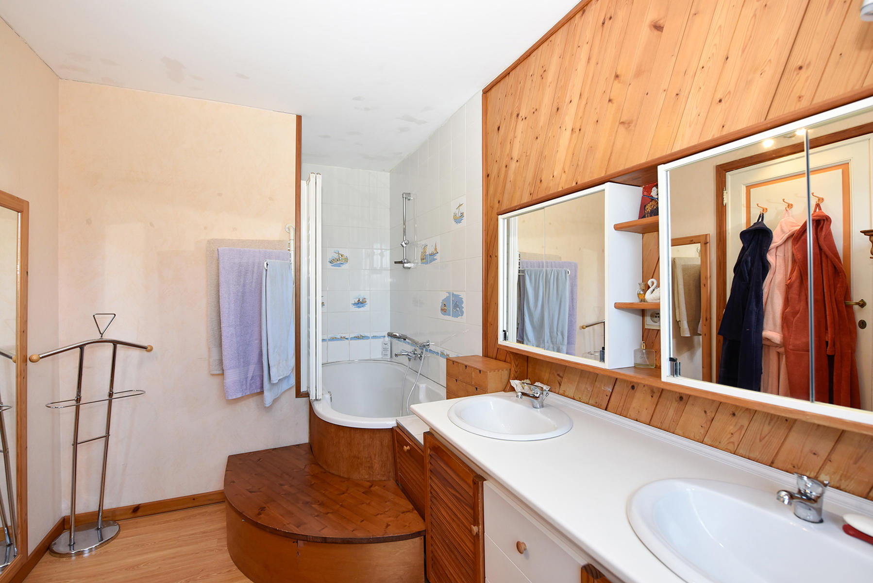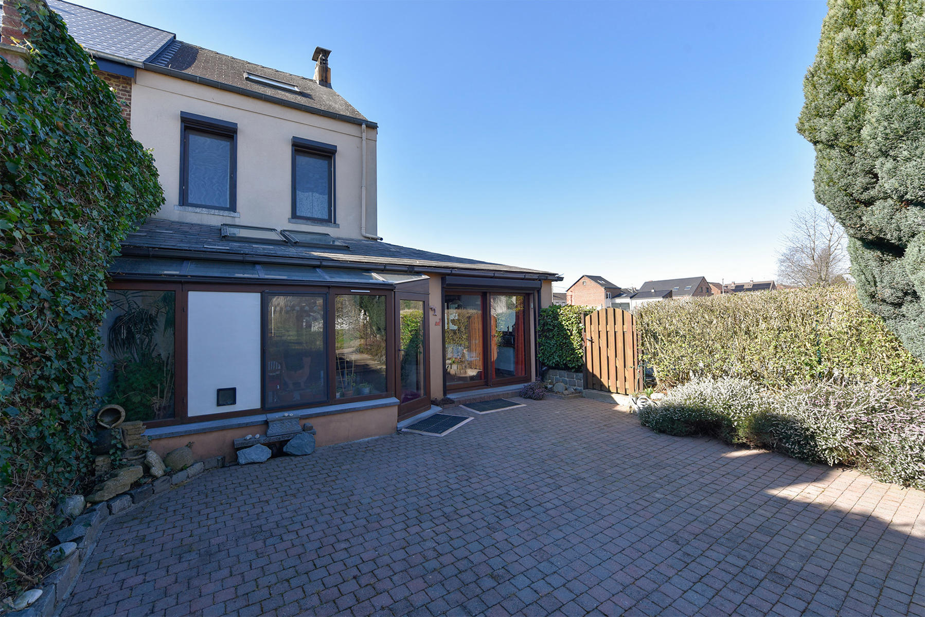+++ Rare opportunité +++ Cette charmante propriété se situe dans un environnement paisible et rural, à l’écart de la route principale. Elle est composée d’une maison kangourou implantée sur un terrain de plus de 28 ares, offrant la possibilité d’accueillir une double famille, d’exploiter une partie professionnelle ou de loger un parent, un adolescent, etc. L’habitation principale dispose, au rez-de-chaussée, d’un hall d’entrée, d’un salon agrémenté d’une cassette au bois, d’une salle à manger avec véranda communicante, d’une spacieuse cuisine avec coin repas, d’une buanderie et d’un WC séparé. L’étage comprend un hall de nuit desservant 3 grandes chambres dont 2 sont aménagées sous combles, une salle de bains et un WC séparé. Une annexe à la maison, équipée de panneaux photovoltaïques, comprend un espace séjour, un espace de rangement, une salle de bains, un WC séparé et un double garage d’environ 31 m² avec fosse de 5m. L’étage de cette annexe mène à 2 grandes chambres chaleureuses. L’extérieur de la propriété se compose d’une grande terrasse carrelée menant à un joli jardin arboré avec piscine hors sol, de remises/abris pour animaux et d’une belle pâture – PEB : E – n° 20230224015794 – 374 Kwh/m².an – 71.669 Kwh/an – FAIRE OFFRE A PARTIR DE 399.000 Euros sous réserve d’acceptation des vendeurs – RC : 722 Euros – VISITES REALISABLES UNIQUEMENT SUR RDV AU 0478/42.92.80