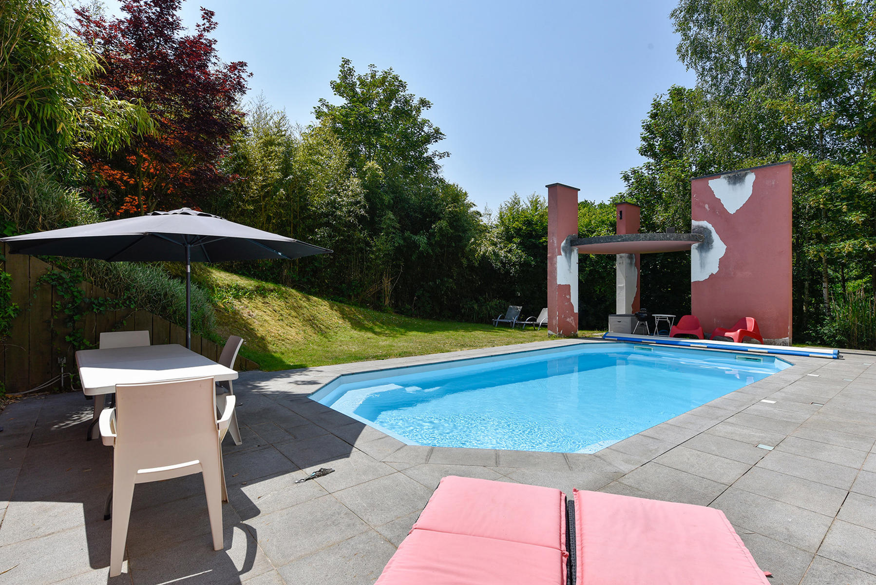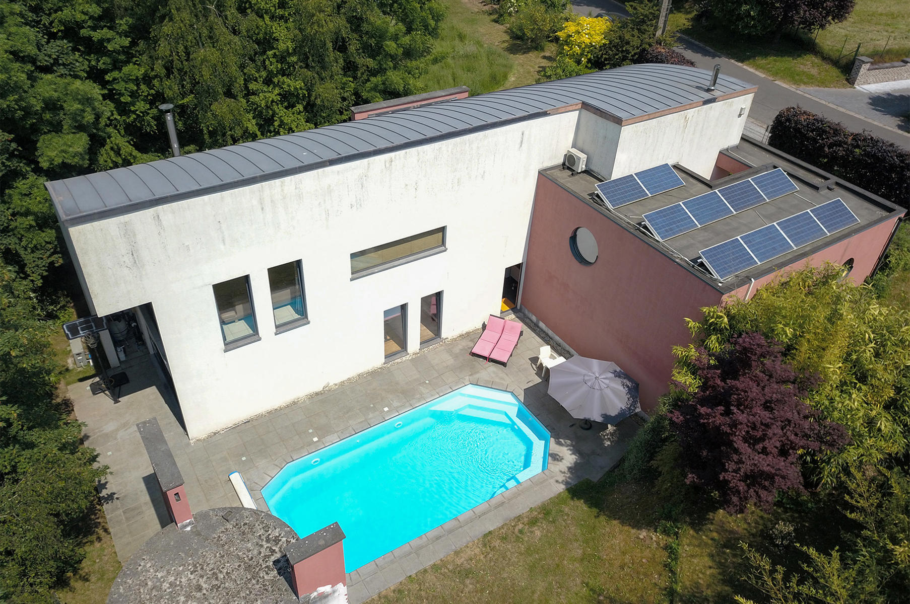 Découvrez cette magnifique villa, érigée sur une spacieuse parcelle de 18a70ca. Au rez-de-chaussée, vous serez accueilli par un hall d’entrée qui ouvre sur un vaste séjour, accompagné d’une cuisine moderne. Vous bénéficierez également d’un garage double, d’un wc séparé et d’une partie professionnelle comprenant un hall d’entrée, un débarras et un bureau d’environ 18m², idéal pour ceux qui souhaitent concilier vie privée et professionnelle. L’étage inférieur offre un hall de nuit desservant trois chambres confortables, dont une avec dressing pour votre plus grand confort. Vous y trouverez également une buanderie pratique et une salle de bains bien aménagée. Profitez de l’extérieur avec un magnifique jardin arboré, créant une atmosphère paisible et relaxante. La terrasse vous invite à profiter de moments de détente en plein air, tandis que la piscine de 8,5m sur 4,1m vous offre un rafraîchissement bienvenu pendant les chaudes journées estivales – Budget travaux à prévoir – PEB : C – n° 20221025005833 – 233 Kwh/m².an – 67.058 Kwh/an – FAIRE OFFRE A PARTIR DE 389.000 Euros, sous réserve d’acceptation des vendeurs – RC : 1.829 Euros +++ VISITES REALISABLES UNIQUEMENT SUR RDV AU 02/899.24.78 +++