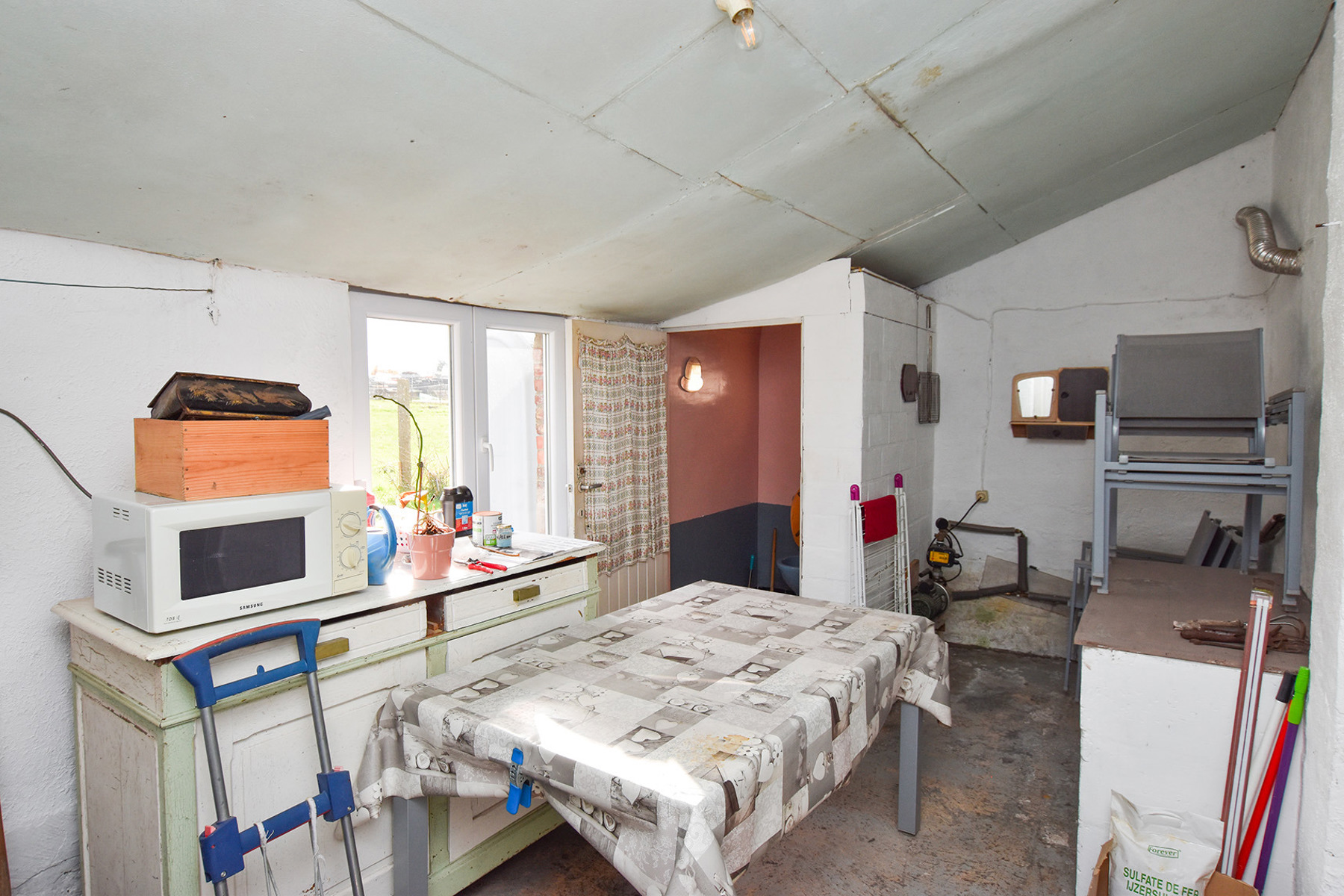 +++ VISITES REALISABLES UNIQUEMENT AU 0495/46.86.26 +++ Charmante maison 4 façades avec un fort potentiel, prête à être revitalisée selon vos envies. Elle vous accueille avec un salon chaleureux et une salle à manger, une cuisine, une salle de bains, deux chambres confortables ainsi qu’une grande buanderie équipée de toilettes séparées. Les combles offrent un espace entièrement aménageable, idéal pour créer un espace supplémentaire à votre convenance, constituant ainsi un avantage considérable. Pour vos besoins de stockage, une cave pratique est accessible au sous-sol. Profitez également des extérieurs bien entretenus, comprenant une terrasse intime donnant sur un joli jardin clôturé et arboré. L’orientation plein sud vous permettra de savourer pleinement les belles journées ensoleillées – PEB : G – n° 20231109006656 – 764 Kwh/m².an – 85.382 Kwh/an – FAIRE OFFRE A PARTIR DE 129.000 Euros sous réserve d’acceptation des vendeurs – RC : 175 Euros – VISITES REALISABLES UNIQUEMENT SUR RDV AU 0495/46.86.26