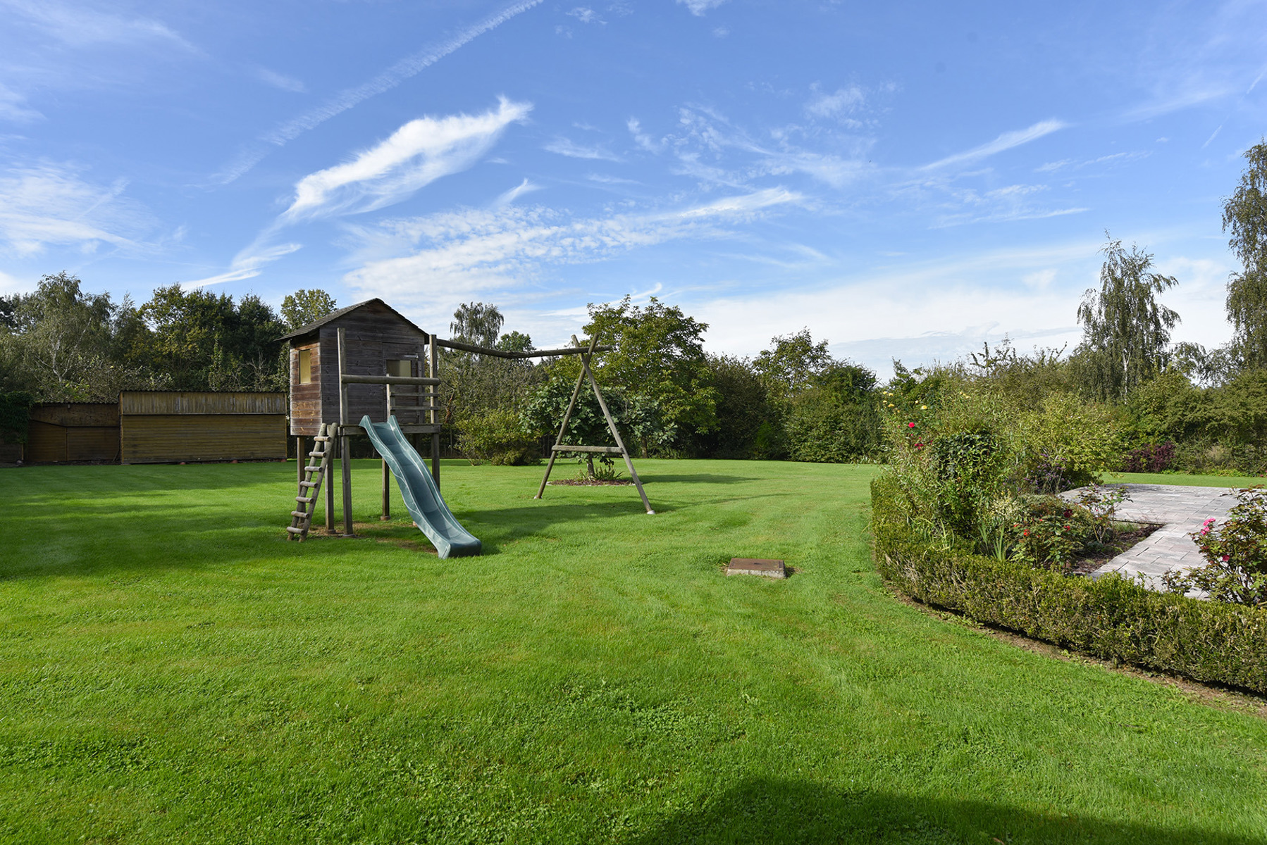 +++ VISITES SUR RDV AU 0495/46.86.26 +++ Cette charmante villa située sur une parcelle de 17ares 57ca vous invite à vivre un rêve résidentiel. Un hall chaleureux vous accueille, vous conduisant vers un spacieux séjour baigné de lumière naturelle avec pour avantage une consommation en énergie faible grâce à un poêle aux briques réfractaires diffusant une chaleur continue afin de profiter d’un confort tout en économisant sur vos factures. La cuisine équipée, devient le cœur de cette maison conviviale. Le rez comprend également un bureau, une salle de bains, une buanderie pratique, des toilettes séparées et un garage généreux d’environ 47m2, offrant assez d’espace pour vos véhicules et votre rangement. L’étage a été conçu pour créer un mode de vie confortable avec un hall de nuit servant quatre belles chambres, une deuxième salle de bains ainsi qu’un espace dressing pour plus de confort. Le sous-sol comprend des grottes. À l’extérieur, un véritable trésor se dévoile avec son jardin arboré, créant une oasis de sérénité avec une grande terrasse et un abri – PEB : B – n° 20231009033370 – 152 Kwh/m².an – 53.357 Kwh/an – FAIRE OFFRE A PARTIR DE 419.000 Euros sous réserve d’acceptation des vendeurs – RC : 1.033 Euros – VISITES AU 0495/46.86.26