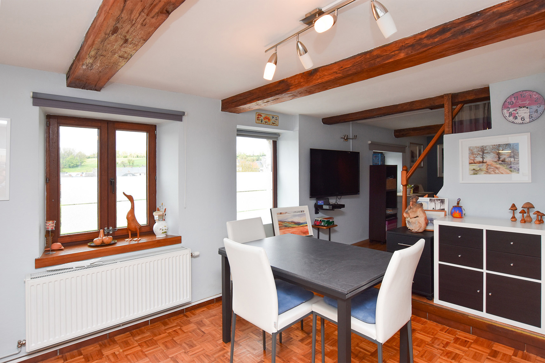 +++ VISITES REALISABLES UNIQUEMENT AU 0495/46.86.26 +++ Nichée dans un environnement paisible, cette agréable maison en pierre combine charme et tranquillité. Elle est idéalement située à quelques minutes des célèbres barrages de l’eau d’heure, une destination prisée pour les vacances. Cette propriété offre ainsi une excellente opportunité d’acquérir une superbe résidence secondaire. Dès l’entrée, un vaste hall lumineux vous accueille, ouvrant sur des intérieurs chaleureusement agencés. Le rez-de-chaussée offre une salle à manger et un salon parfait pour la détente, une cuisine, une salle de douche, un débarras pratique et des toilettes séparées. L’étage abrite deux chambres confortables qui promettent quiétude et repos. L’extérieur est un véritable écrin de verdure avec une terrasse accueillante pour vos repas en plein air et un jardin luxuriant, idéalement orienté sud-ouest pour profiter de chaque moment de beau temps. Vous disposerez également d’une remise utile pour le rangement et d’un garage indépendant avec accès privatif, complété par une cour en gravier pour un stationnement facile – PEB : G – n° 20150923024539 – 627 Kwh/m².an -75.250 Kwh/an – FAIRE OFFRE A PARTIR DE 159.000 Euros sous réserve d’acceptation des vendeurs – RC : 252 Euros – VISITES REALISABLES UNIQUEMENT SUR RDV AU 0495/46.86.26