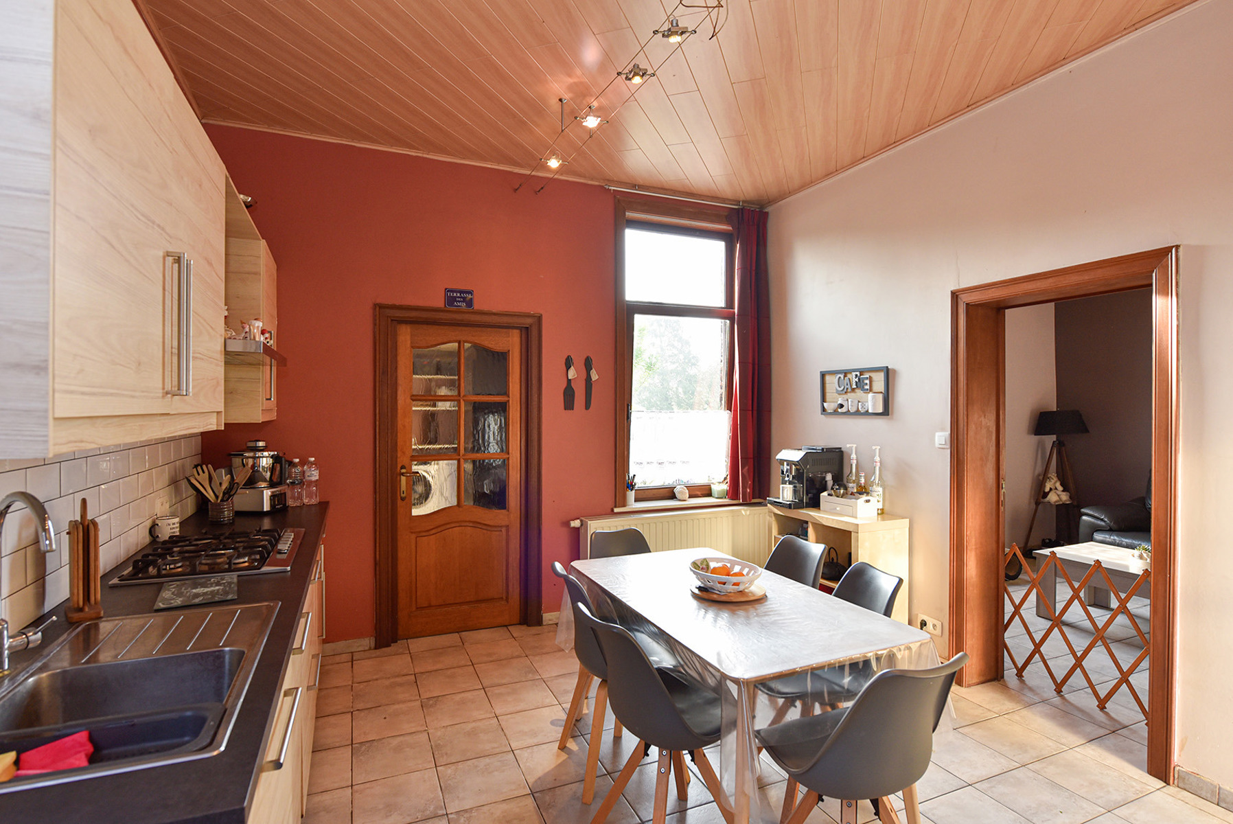 VISITES UNIQUEMENT SUR RDV AU 0495/46.86.26 – Explorez cette spacieuse habitation bourgeoise quatre façades, érigée sur une parcelle de 6 ares 19 centiares et offrant au rez : hall d’entrée, spacieuse salle-à-manger, salon cosy, cuisine équipée, buanderie et WC séparé. Un grand garage de +/-28m² vous offre un espace sécurisé pour vos véhicules. A l’étage, un hall de nuit déssert deux chambres, un bureau (ou chambre d’enfant) et une grande salle de bains. De plus, un immense grenier aménagé de +/-70m² vous permet de laisser libre cours à votre imagination pour créer encore plus d’espace adapté à votre style de vie. En sous-sol, des caves vous offrent des espaces supplémentaires pour le stockage. A l’extérieur, un jardin clôturé orienté vers l’est vous invite à profiter de moments paisibles, avec une terrasse idéale pour les repas en plein air lors des belles journées. Deux places de parking en devanture vous assurent un accès facile à votre domicile – PEB : F – n° 20240501007742 – 465 Kwh/m².an – 129.400 Kwh/an – FAIRE OFFRE A PARTIR DE 199.000 Euros sous réserve d’acceptation des vendeurs – RC : 745 Euros (réduction possible des droits d’enregistrement)