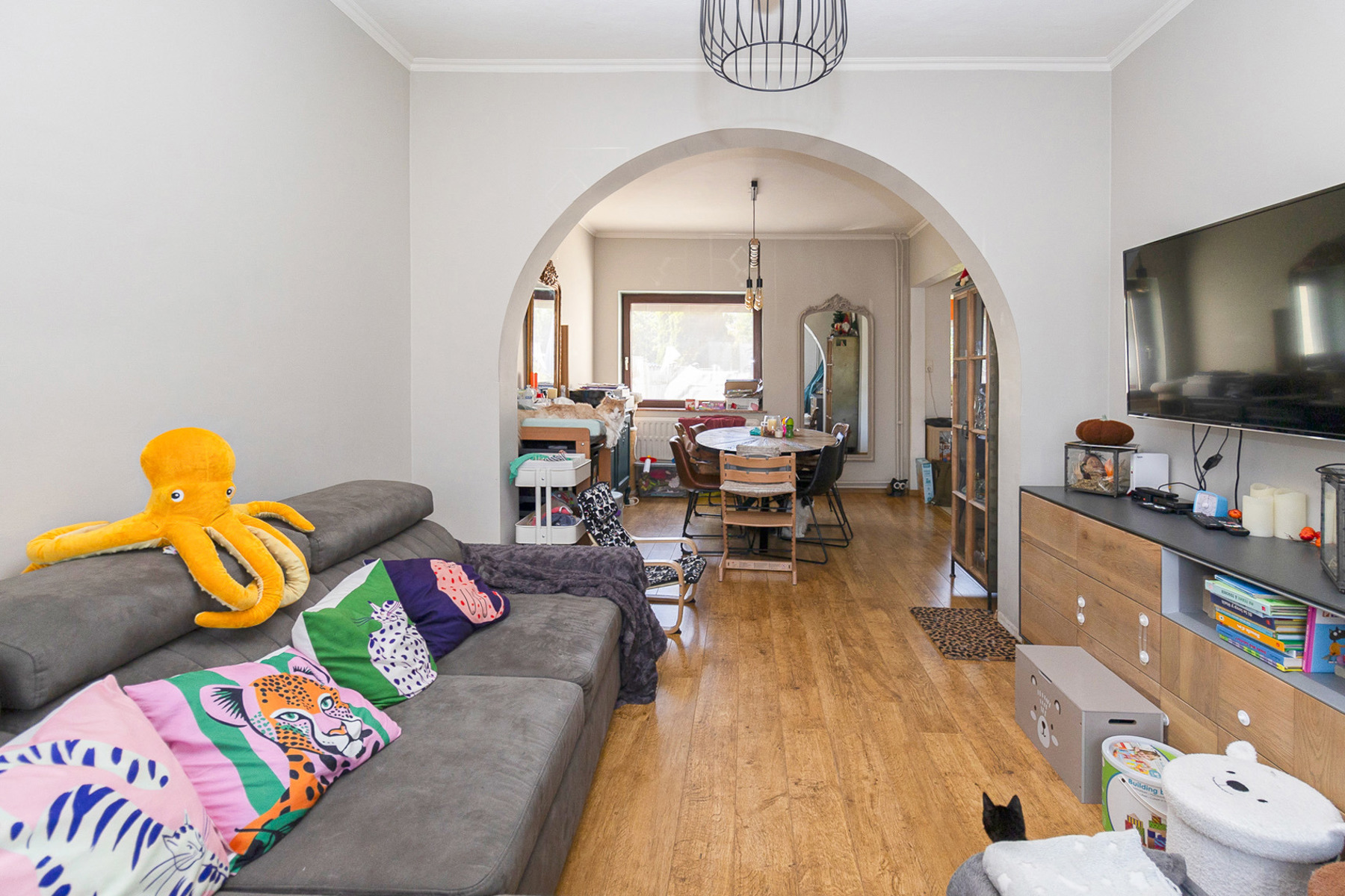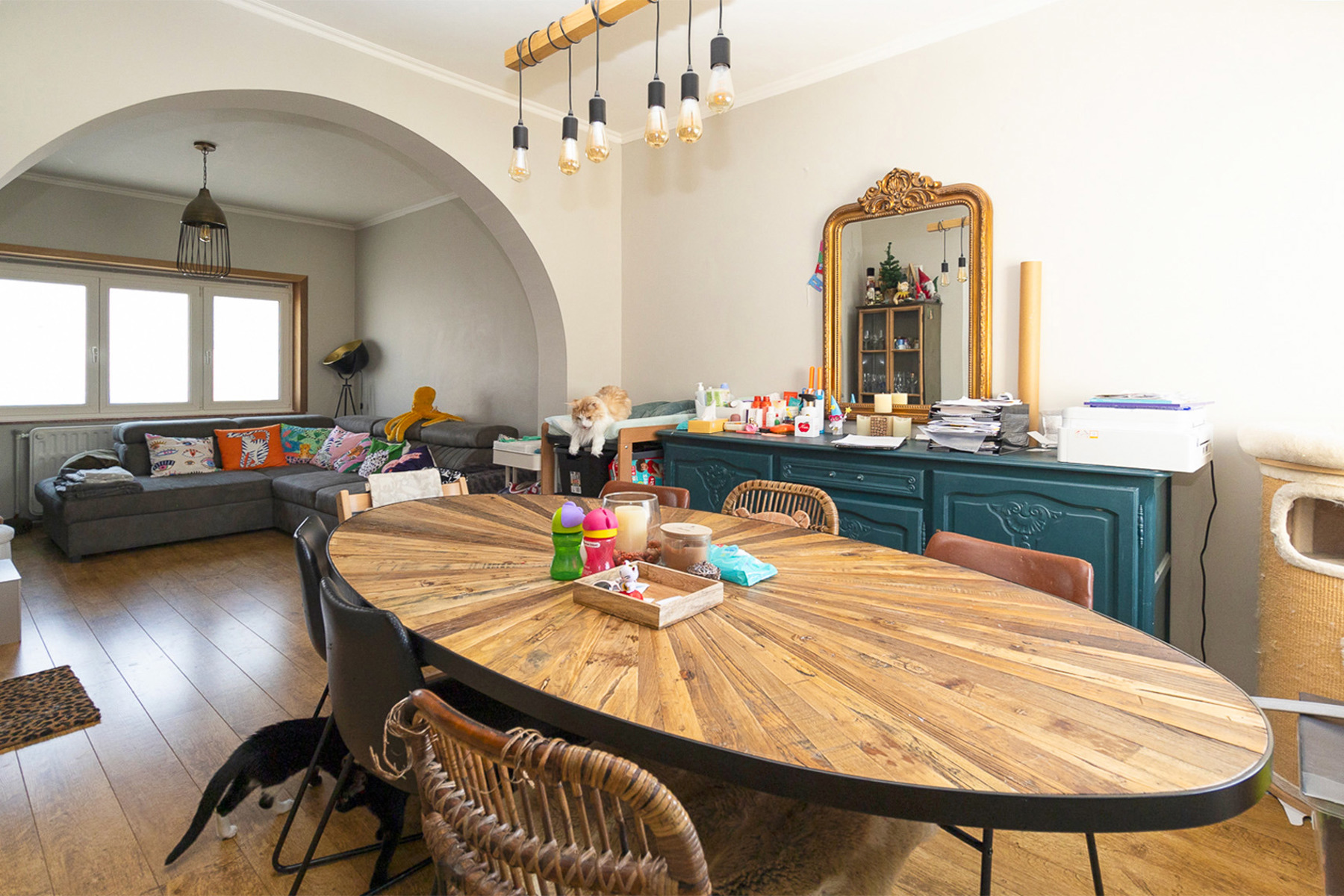 +++ VISITES REALISABLES UNIQUEMENT SUR RDV AU 0470/34.87.93 +++ Découvrez cette maison quatre façades, située à proximité des commodités et offrant tout le confort moderne nécessaire pour une vie agréable. En entrant, vous serez accueilli par un hall d’entrée spacieux menant d’une part à un bureau pouvant servir à des fins professionnelles et d’autre part à un séjour convivial. La grande cuisine entièrement équipée ravira les amateurs de cuisine. Un WC séparé complète le rez-de-chaussée. À l’étage, un hall de nuit dessert trois chambres confortables, offrant à chacun son espace personnel, ainsi qu’une salle de bains. Le grenier, d’environ 35 m², est aménageable selon vos envies, offrant des possibilités d’extension ou de rangement supplémentaires. En sous-sol, une cave spacieuse répondra à vos besoins de stockage. Les extérieurs ne sont pas en reste, avec un vaste espace de stationnement à l’avant de la maison, un passage latéral menant à un garage pratique, et un joli jardin clôturé, doté d’une terrasse idéale pour profiter des journées ensoleillées. – PEB : D – n° 20170115003461 – 290 Kwh/m².an – 41.485 Kwh/an – FAIRE OFFRE A PARTIR DE 279.000 Euros sous réserve d’acceptation des vendeurs – RC : 669 Euros – VISITES SUR RDV AU 0470/34.87.93