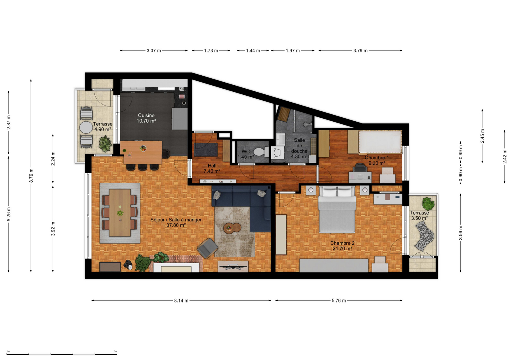 Le bien se situe sur la commune de Laeken – À deux pas de toutes les commodités et des transports en commun, dans un quartier qui deviendra piéton en 2026, cet appartement offre un cadre de vie pratique et agréable. Il séduit par son grand séjour lumineux où la cuisine ouverte s’intègre parfaitement à l’espace séjour, créant une atmosphère conviviale et moderne. L’espace nuit se compose d’une grande chambre, d’une seconde chambre plus classique, d’une salle de douche contemporaine et d’un WC séparé. À l’extérieur, deux terrasses et un jardin privatif offrent de véritables espaces de détente. L’appartement dispose aussi d’un box de garage, proposé en option. Un bien équilibré, lumineux et idéalement situé, alliant confort, fonctionnalité et qualité de vie au quotidien – PEB : F – n° 202510240000732004019 – 341 Kwh/m².an – FAIRE OFFRE À PARTIR DE 299.000 Euros, sous réserve d’acceptation des vendeurs – RC : 974 Euros – VISITES REALISABLES UNIQUEMENT SUR RDV AU 0476/60.51.80