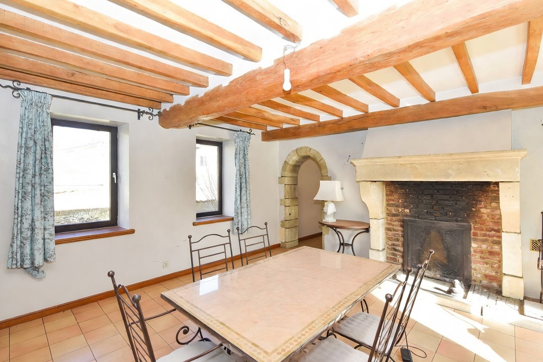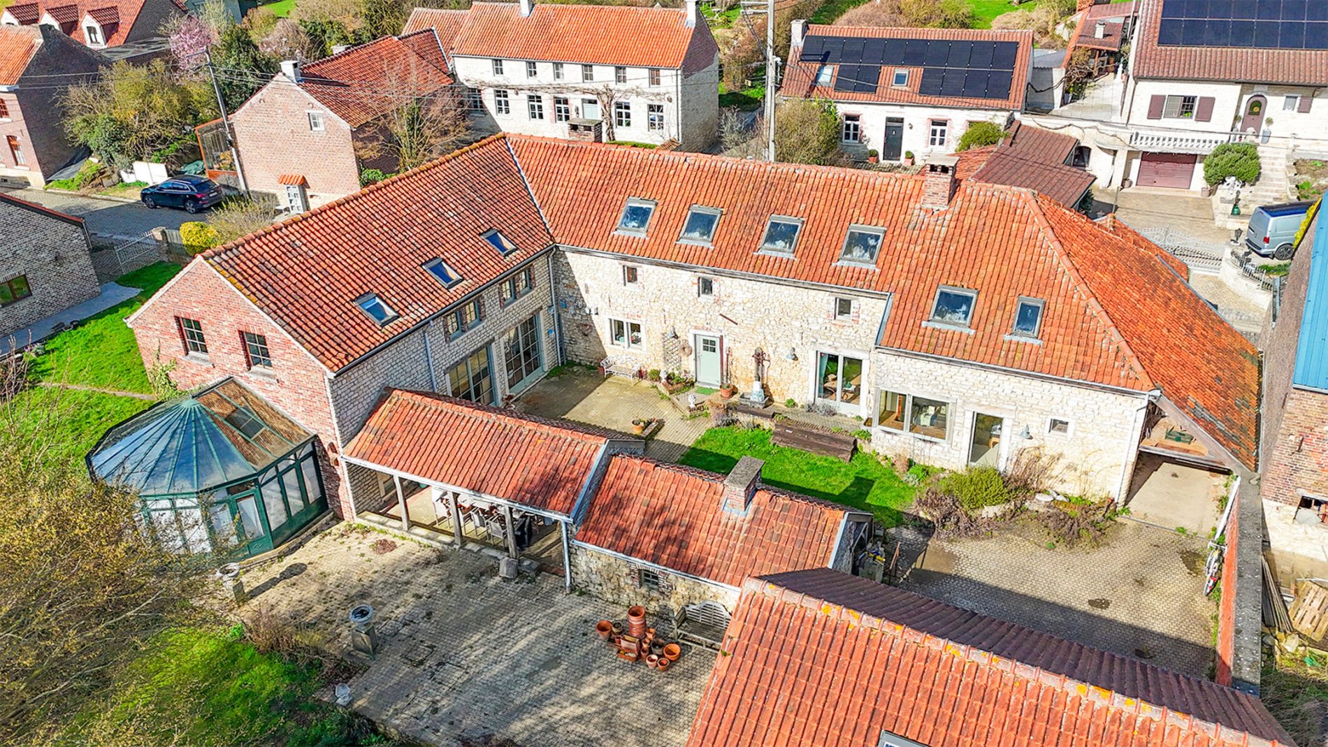 Charmante fermette de caractère à rafraîchir, implantée sur une superbe parcelle de 33 ares 36 centiares, offrant un cadre de vie rare alliant volumes, cachet et potentiel. Derrière sa façade pleine de charme, la propriété dévoile de beaux volumes et une configuration harmonieuse. Le rez-de-chaussée propose un hall d’accueil, un vaste séjour, une salle à manger conviviale, un salon plus intimiste ainsi qu’un espace détente lumineux avec piscine intérieure (9,5 m x 4,5 m) et double sauna, véritable atout bien-être. À l’étage, vous découvrirez une grande salle polyvalente, 5 chambres, une salle de bains, une salle de douche ainsi qu’un bureau en mezzanine. Les extérieurs offrent une cour intérieure, des dépendances, garages et un vaste terrain verdoyant ouvert sur la nature, idéal pour les amateurs de tranquillité, d’animaux ou de projets extérieurs. Un bar intérieur avec four à pain vient compléter l’ensemble pour des moments conviviaux. Quelques travaux de remise au goût du jour permettront de révéler tout le potentiel de cette propriété unique. Un bien coup de cœur, offrant un équilibre rare entre espace, bien-être et opportunités, idéal pour les amoureux de la nature – PEB : C – n° 20250714027094 – 247 Kwh/m².an – 120.409 Kwh/an – FAIRE OFFRE À PARTIR DE 719.000 Euros, sous réserve d’acceptation des vendeurs – RC : 1.324 Euros – VISITES REALISABLES UNIQUEMENT SUR RDV AU 0476/60.51.80