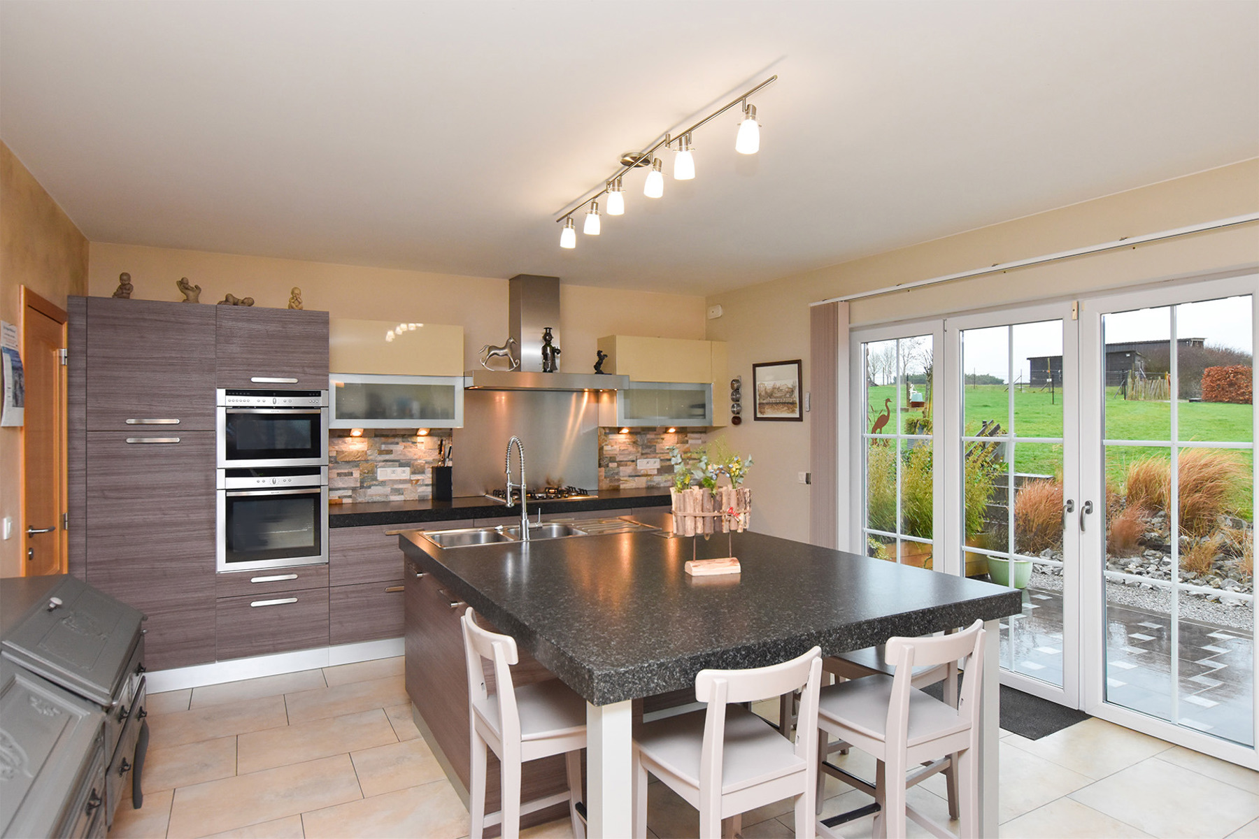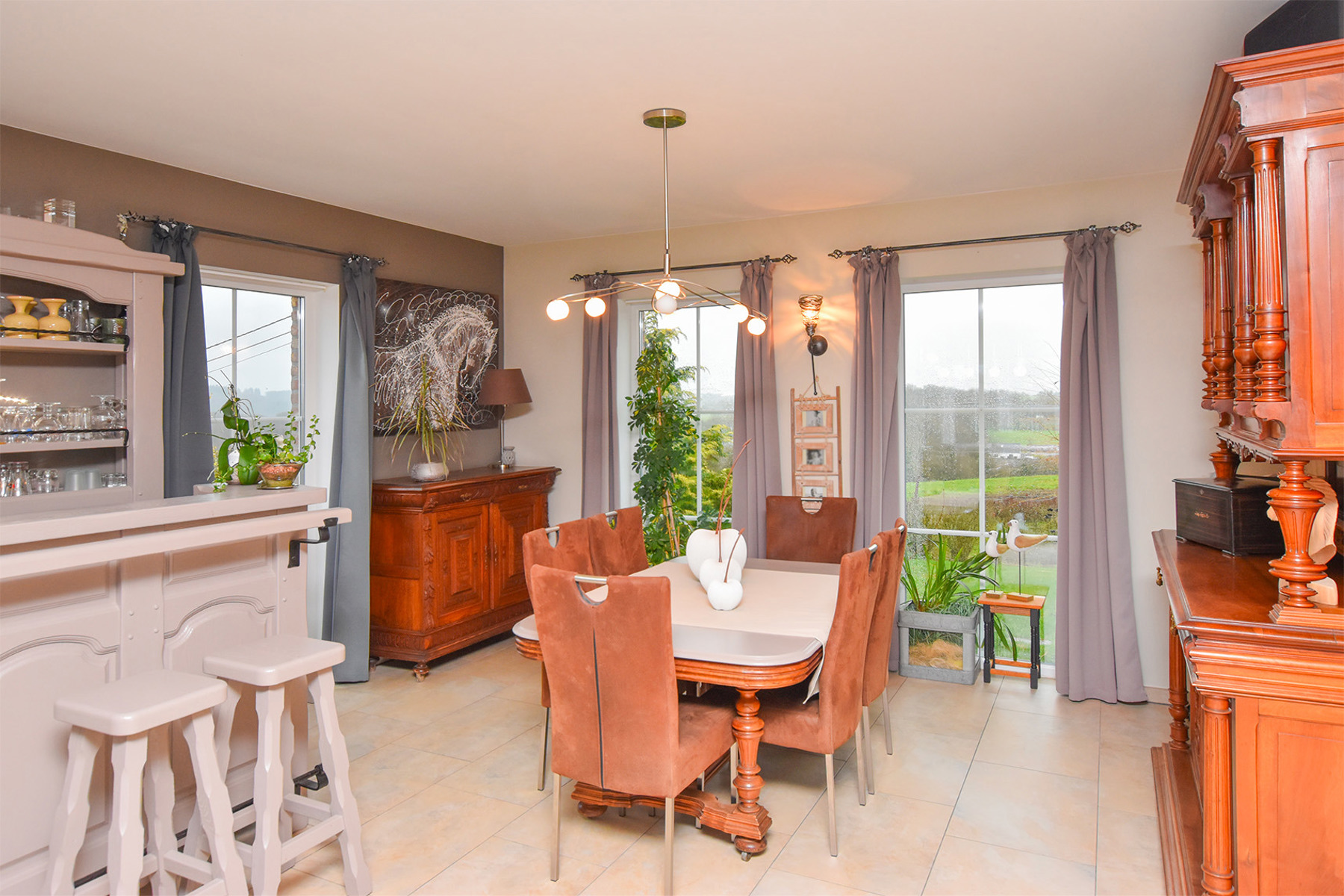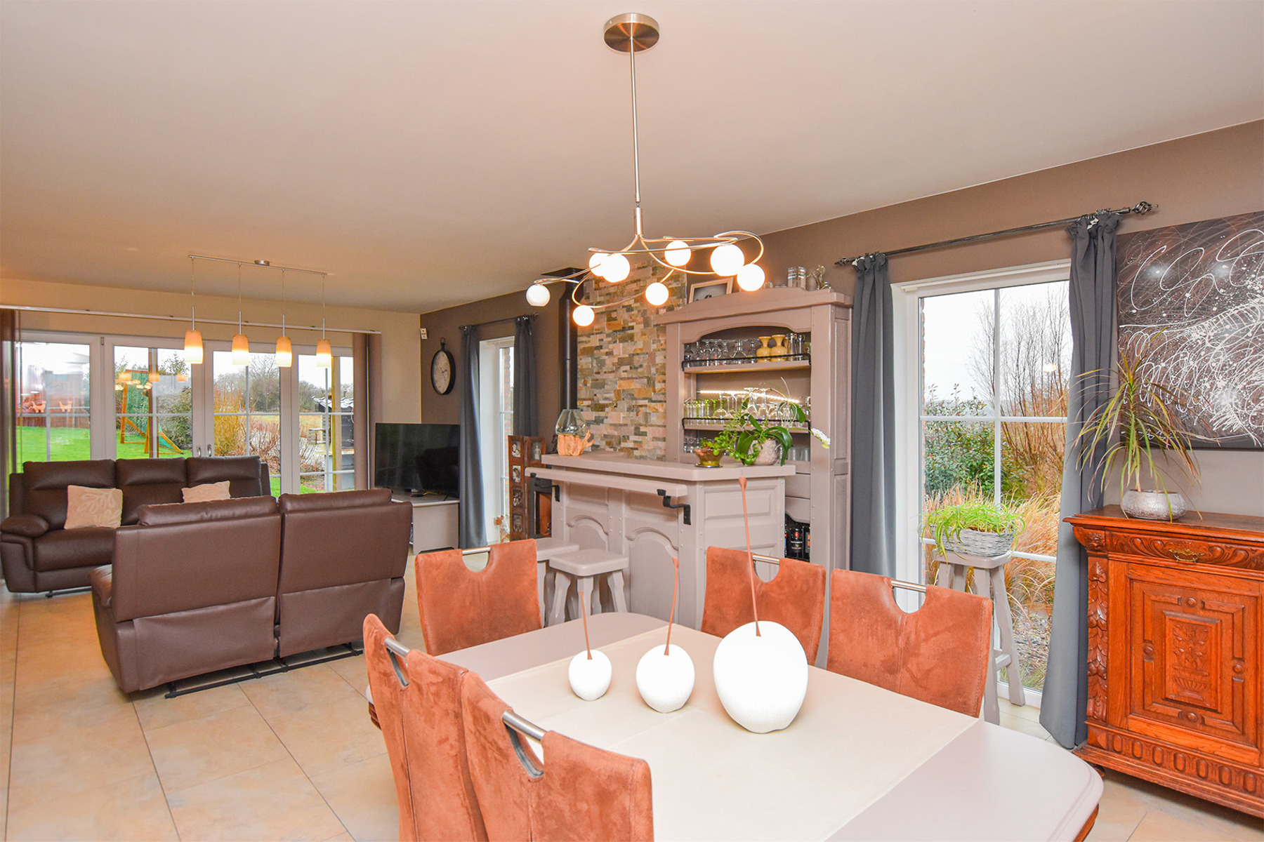 Splendide propriété située au cœur de la nature, dans une rue secondaire et paisible, offrant calme absolu, intimité totale et vue dégagée sur les champs, sans aucun vis-à-vis. La maison propose 4 chambres, un dressing et un bureau, et peut convenir à l’exercice d’une profession libérale moyennant de légers aménagements. La possibilité de stationner une dizaine de véhicules constitue un atout rare.Au RDC : un vaste hall d’entrée avec WC séparé dessert un très grand séjour lumineux comprenant salon, salle à manger et espace bar, ainsi qu’une cuisine entièrement équipée, pensée pour maximiser la lumière naturelle et les vues extérieures. Une arrière-cuisine et un accès direct au garage facilitent le quotidien. À l’étage :vous trouverez une suite parentale avec salle de bains privative et grand dressing, trois chambres supplémentaires, une salle de douche ainsi qu’un bureau. Les combles, actuellement utilisés en espace de rangement, complètent l’ensemble. Maison isolée, construite en 2009, offrant de beaux volumes, des finitions soignées et des matériaux de qualité, idéale pour une vie familiale ou professionnelle dans un cadre exceptionnel – PEB : B – n°20240711014719 – 140 Kwh/m².an – 34.465 Kwh/an – FAIRE OFFRE A PARTIR DE 395.000 Euros, sous réserve d’acceptation des vendeurs – RC : 1.085 Euros – VISITES REALISABLES UNIQUEMENT SUR RDV AU 0492 88 90 39
