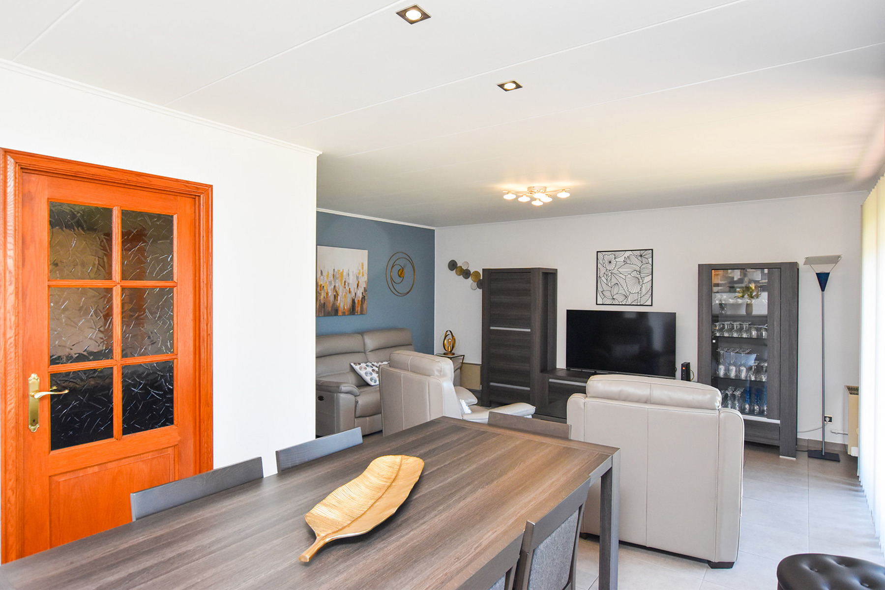 Idéalement située dans un quartier résidentiel en cul de sac et paisible, cette superbe habitation 3 façades de plain-pied constitue une belle opportunité pour les amateurs de confort et de praticité. Entièrement rénovée et modernisée au cours des dix dernières années, elle offre des espaces de vie agréables et fonctionnels. Elle se compose d’un hall d’entrée, d’un séjour lumineux, d’une cuisine équipée, de trois chambres confortables, d’une salle de douche, d’un WC séparé ainsi que d’un grand garage. À l’extérieur, vous profiterez d’un joli jardin soigneusement entretenu, agrémenté d’une terrasse, idéal pour les moments de détente en famille ou entre amis. Le bien peut également être vendu meublé, avec certains équipements complémentaires tels que les caméras de surveillance, les luminaires et les stores. Maison qui consomme très peu avec un excellent PEB : C – n°20260424034441 – 201 Kwh/m².an – 22.625 Kwh/an – FAIRE OFFRE A PARTIR DE 269.000 Euros, sous réserve d’acceptation des vendeurs – RC : 713 Euros – VISITES REALISABLES UNIQUEMENT SUR RDV AU 0492 88 90 39